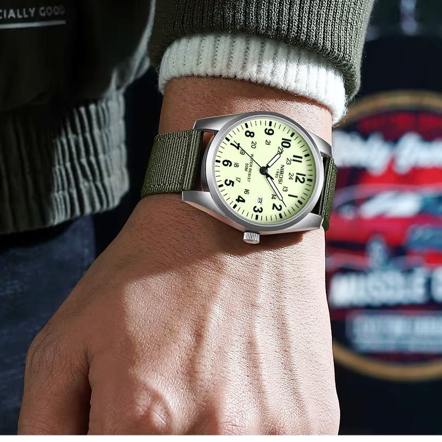 Элегантная модель с нейлоновым ремешком и кварцевым механизмом. Светящиеся стрелки и водозащита 3 ATM делают эти часы удобными для активной жизни.