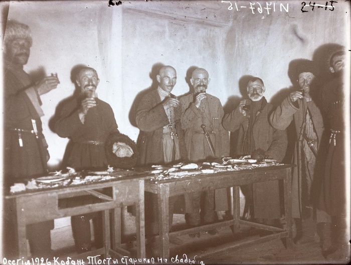 16. На свадьбе: мужчины за пиршественным столом во время произнесения тоста