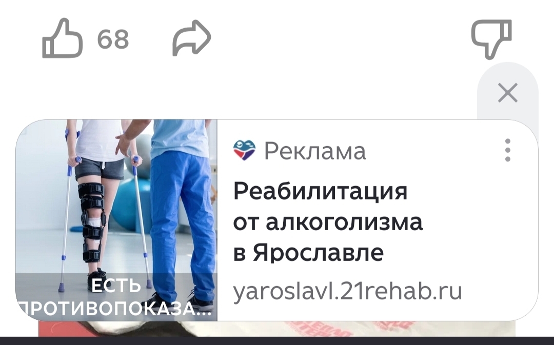Контекстная реклама предложила какой-то суровый ярославский рехаб. "Для начала мы сломаем вам ноги. Приходите!"