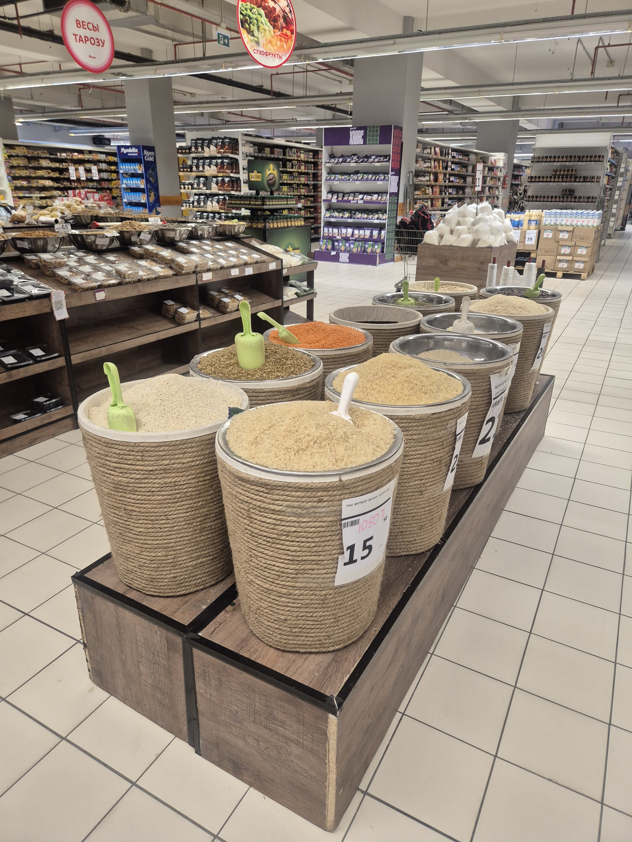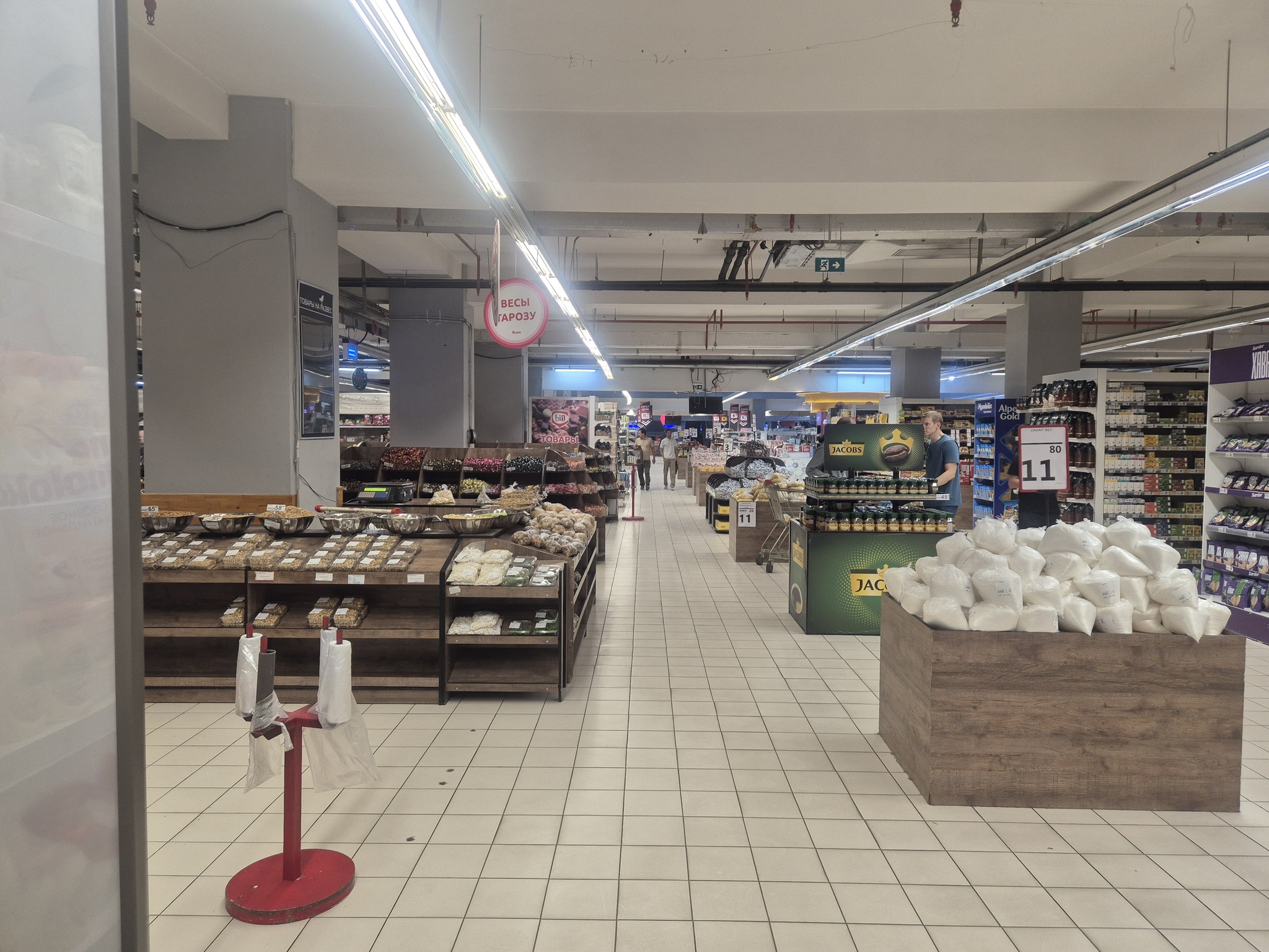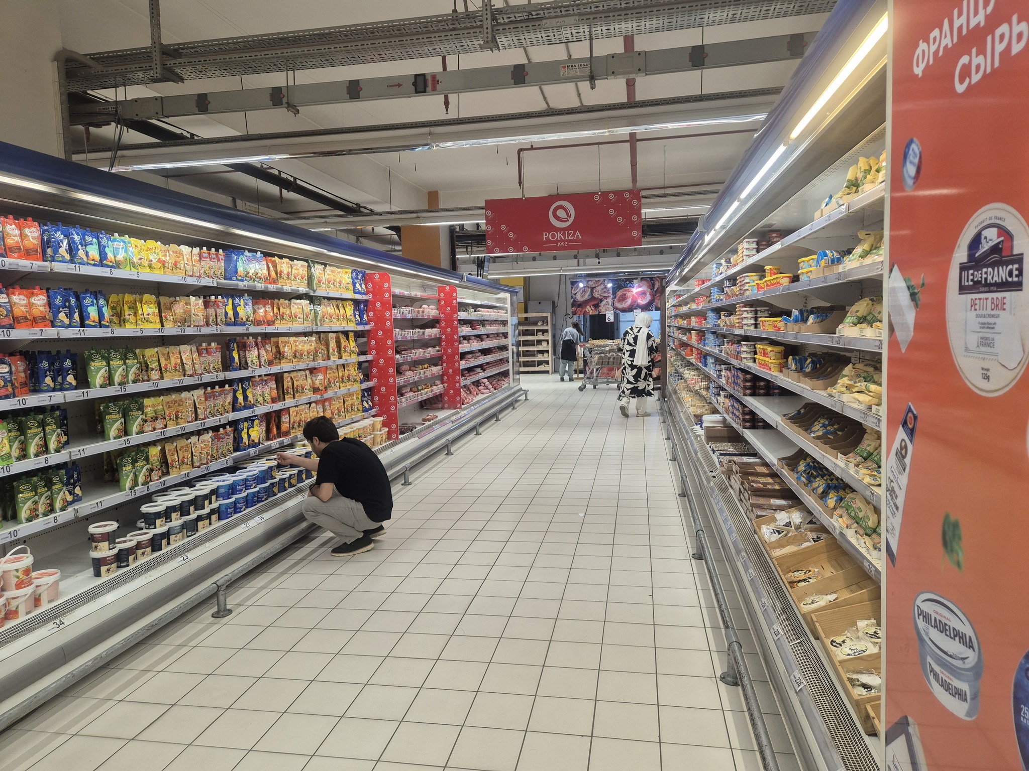 Много российских продуктов и санкционки, но ближе к горам и периферии страны, выбор сладкого и продуктов ограничен.