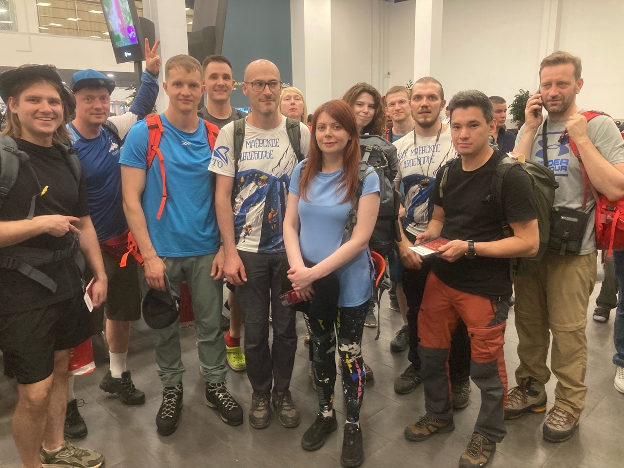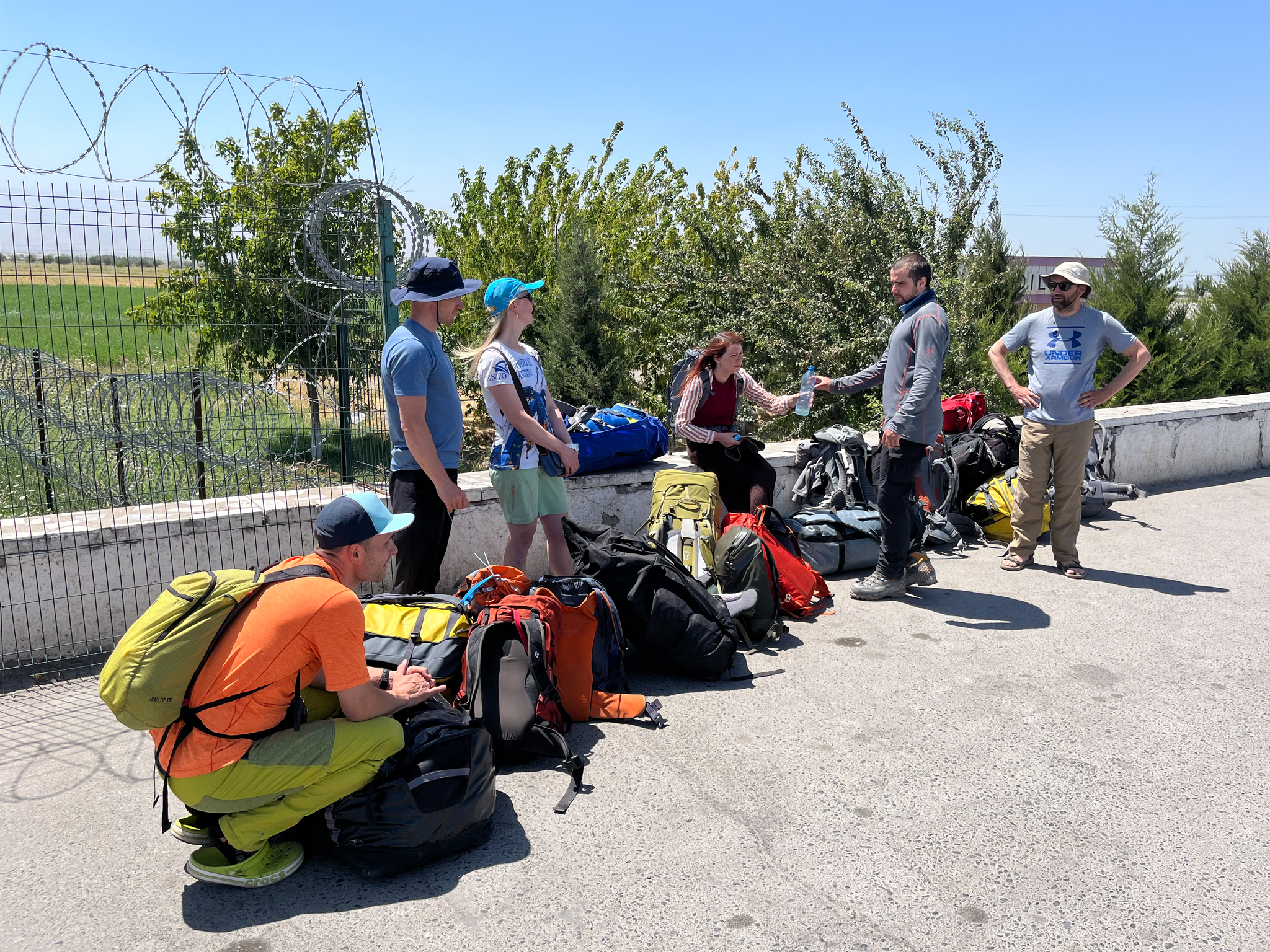 У нас не возникли проблемы при переходе границы. Мы боялись что такое количество багажных мест не примут или могут отложить на следующий рейс, но все прошло гладко. Проход таможенного контроля в МСК прошел быстро, в Душанбе пришлось немного попробиваться через очереди, но благодаря клубным футболкам однозначно намекающим на общую команду и принадлежность к альпинизму, нас пропускали отдельными очередями.