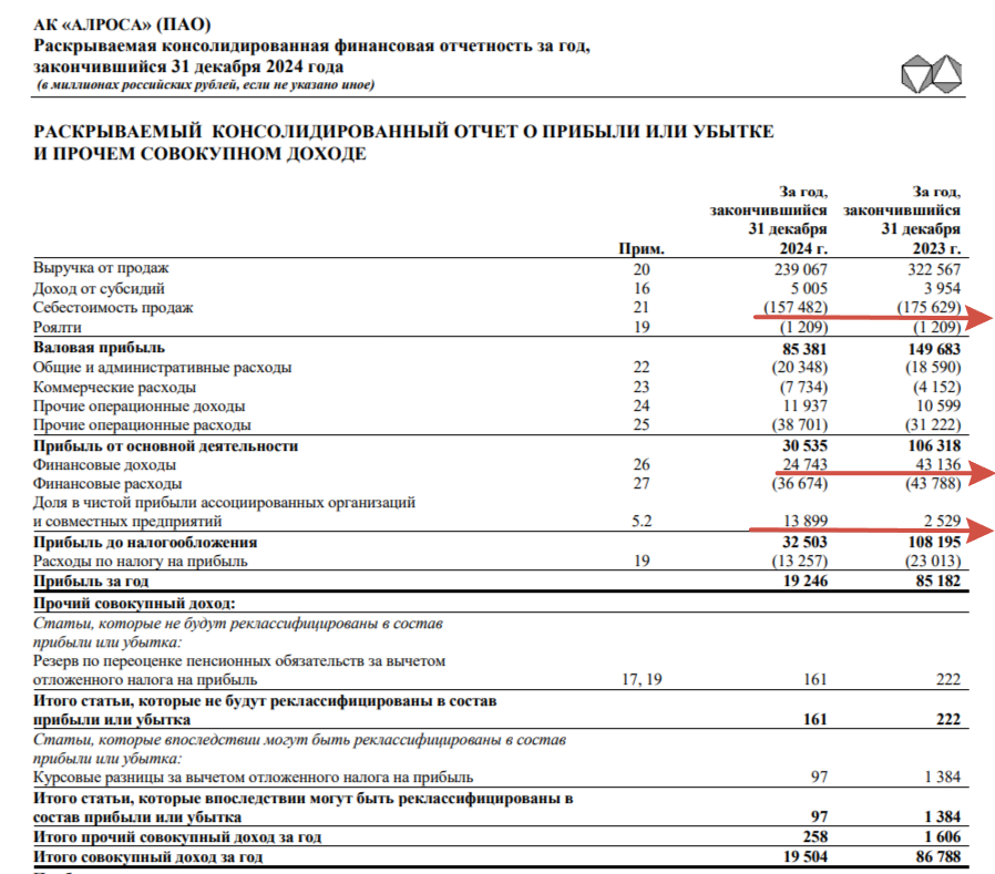 АЛРОСА отчиталась за 2024 г. — ожидаемый крах фин. показателей во II полугодии на фоне санкций, снижения цен на алмазы и отсутствии спроса