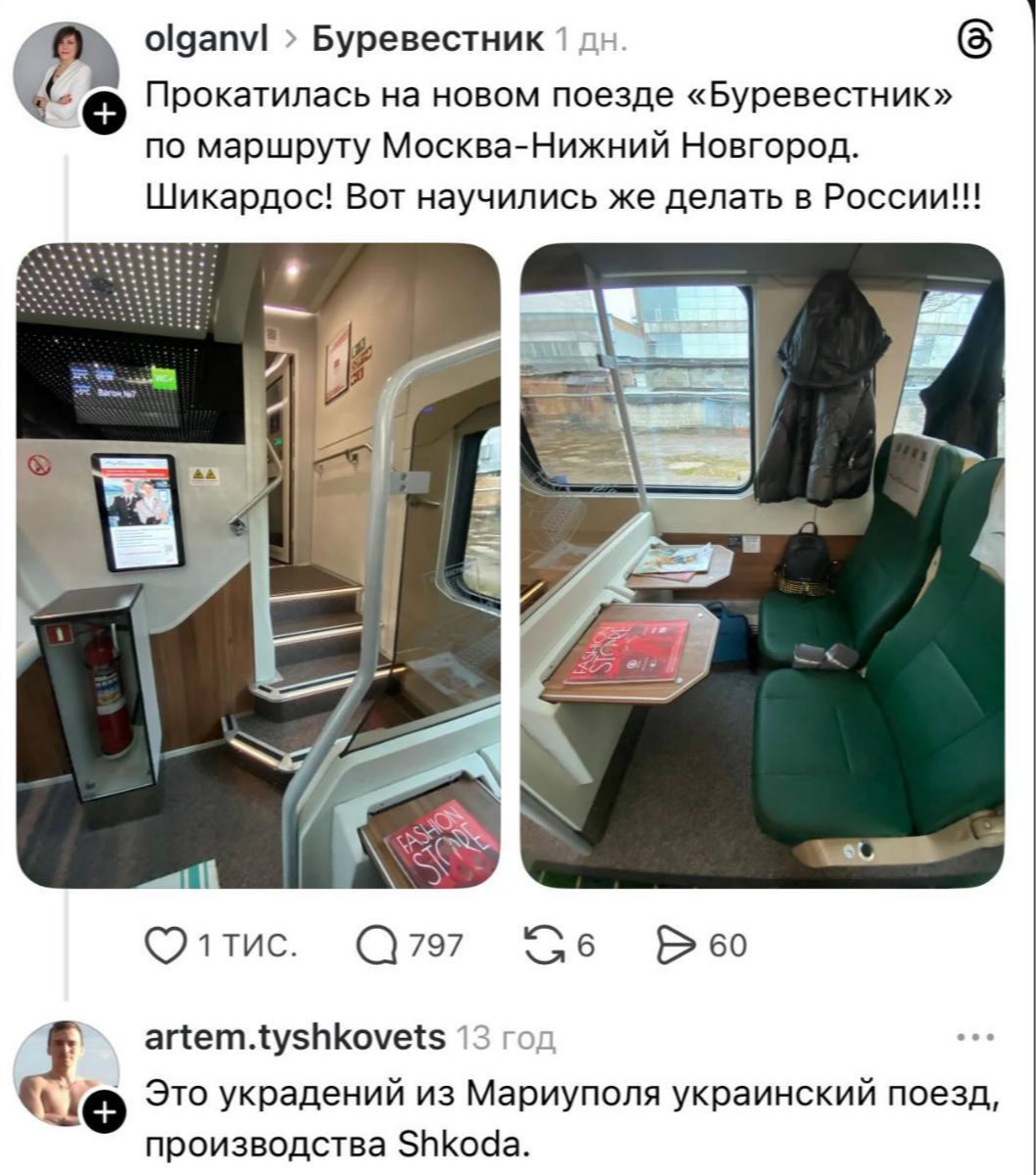 2981 Ignatbrat Альтернативная реальность1 18 часов назад Про новый поезд Фейк Скриншот Украинцы Политика Русофобия Бред Идиотизм Поезд РЖД Комментарии Threads 784 35 13 2 1 1 Ещё 1
