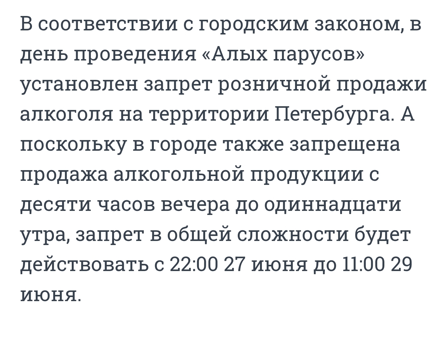 Вот и наступил в очередной раз тот день, когда в городе запрещают продажу алкоголя из-за лиц, которым априори запрещено продавать алкоголь. Святой день для наливаек и серых магазинчиков на районе. Как всегда браво нашим гениальным умам, всецело заботящимся о подрастающем поколении! Только вот скажите мне: когда такие запреты останавливали выпускников?)