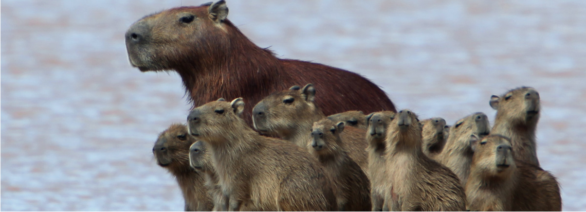 Капибара — пожалуй, самое спокойное существо Амазонки. Это самый крупный грызун в мире — весит до шестидесяти килограммов и достигает метра в длину. Но при этом ведёт себя как настоящий дзен-мастер. Они живут группами, проводят полжизни у воды и прекрасно плавают. Часто можно увидеть, как капибары просто сидят на берегу и греются на солнце — абсолютно невозмутимо, даже если рядом кто-то шумит. Интересно, что их не боятся даже другие животные — капибары отлично ладят со всеми. Поэтому их часто называют самыми дружелюбными обитателями Амазонки.