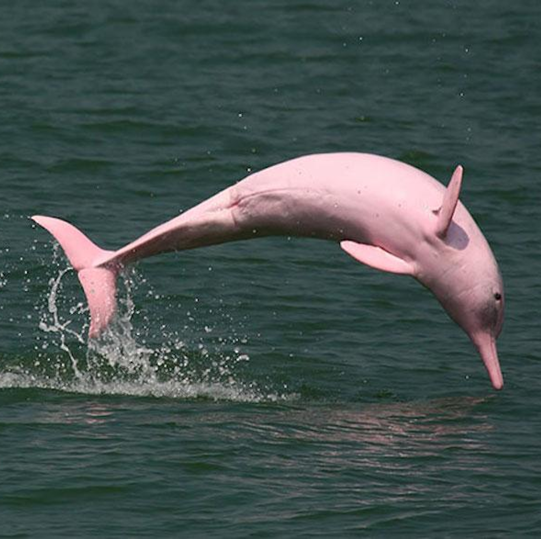 Это розовый речной дельфин — или ботo. Он живёт только в пресной воде Амазонки и достигает двух с половиной метров в длину. Молодые дельфины серые, но с возрастом становятся розовыми. Чем старше и активнее дельфин, тем ярче его цвет — особенно, когда он возбуждён… или, скажем так, эмоционально вдохновлён во время игр. Но самое интересное — легенда. Местные жители верят, что ночью розовый дельфин выходит на берег, превращается в красивого мужчину в белом костюме и танцует с женщинами на праздниках. Наутро он снова уходит в реку. И если кто-то из женщин пропадает, в деревне говорят — её унёс дельфин. Забавно, но благодаря этой легенде людей, охотящихся на дельфинов, стало меньше. Наверное, сработало женское лобби.