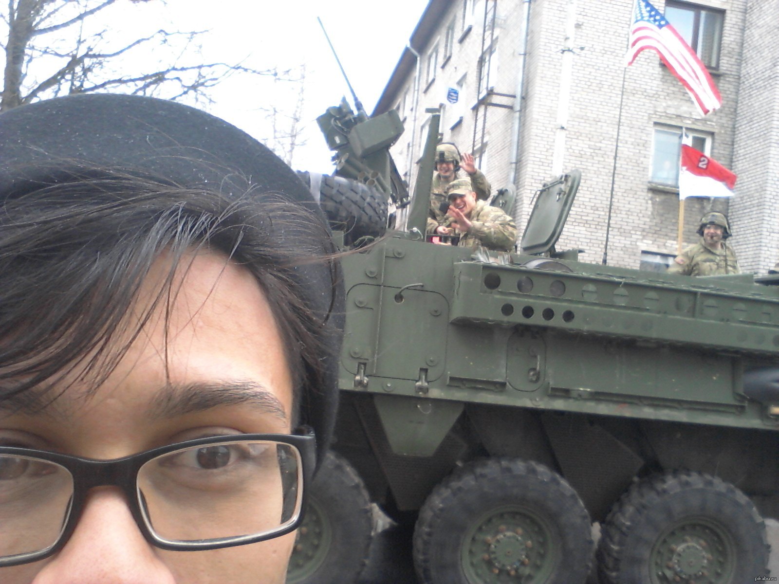 316 surFER58 Американские солдаты с радостью позируют для селфи Эстонского паренька. 10 лет назад Парад в честь дня независимости Эстонии, Нарва, 24.02.2015 Парад Американцы Танки Селфи Радость Эстония