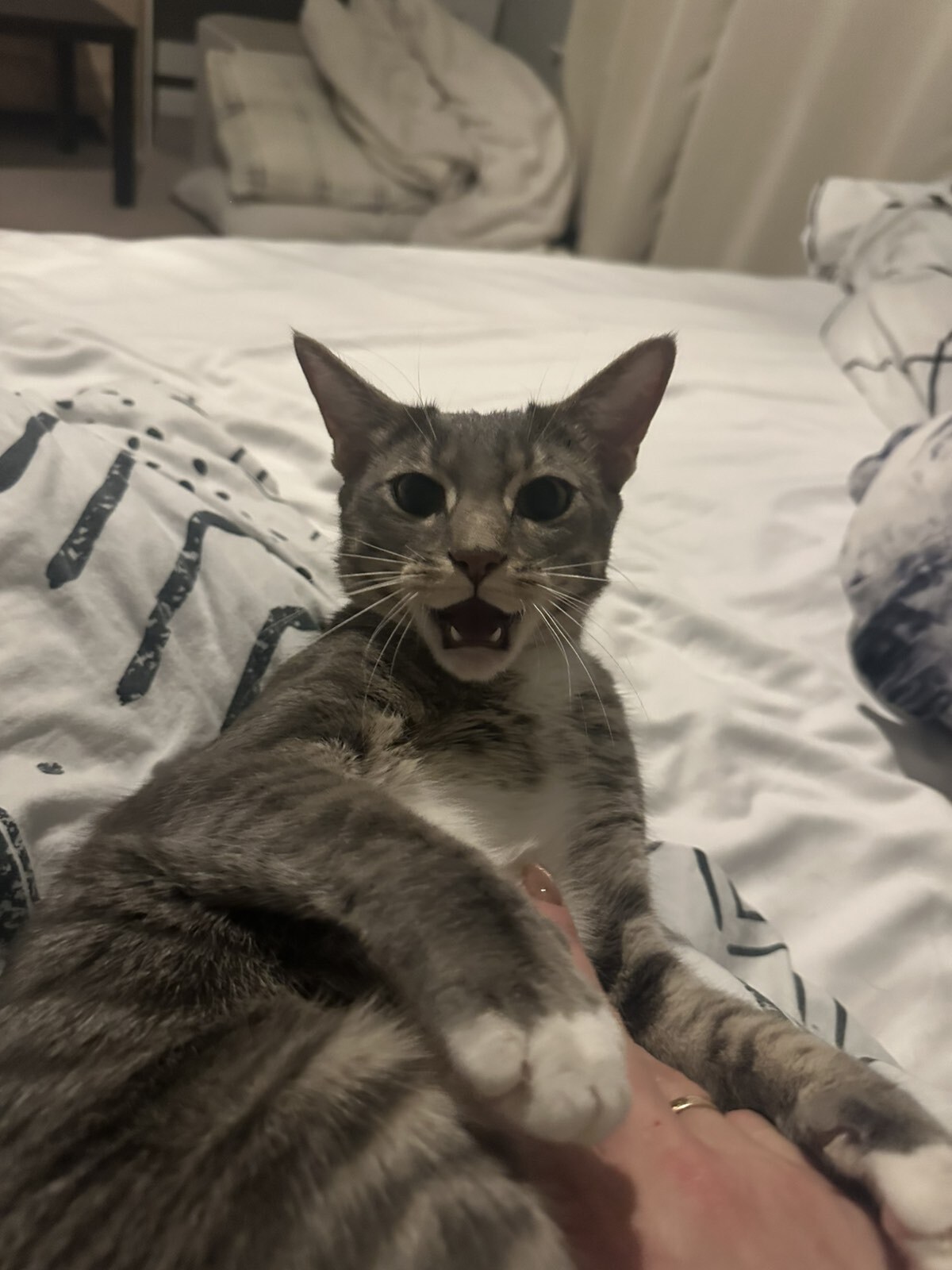Следующий пассажир — Санни. Решили спасти кошку из шелтера. Чтобы было понятно, тут всех бездомных животных — кошек и собак — отлавливают и отправляют в питомники. Если есть чип и владелец, то возвращают. Если нет, то чипируют и стерилизуют. Далее животное живёт в шелтере, пока там есть место. Размещается объявление на государственном сайте, можно посмотреть и приехать забрать себе. Если места нет, когда привозят новую партию, их усыпляют. Много людей забирают животных на передержку себе домой и ищут хозяина, много работников частных ветеринарных клиник так делают. Шелтер снабжает их кормом для животных, пока они находятся у них. Корм обычно отдаётся бесплатно компаниями в шелтер, такие как Hills, например. Так что, забирая животное из шелтера, можно спасти ему жизнь. Иногда кошек (не собак) выпускают обратно с маркировкой на ухе. Таких называют community cats. Они живут на воле. Обычно решение принимается по факту: если животное больное и травмированное, оно не выживет на воле. Или если животное дикое и не может жить в доме. Кошки будут на улице всегда. И если их не выпускать обратно стерилизованными, то их место займут новые нестерилизованные. Таким образом регулируют популяцию. Там очень сложно, я не сильно разбирался. Но в целом система работает. Про собак много не знаю. Но по статистике в США собак больше, чем кошек, держат дома. На улице бродячих практически нет, так как это представляет опасность для людей, и государство их отлавливает. Ну в общем, я приехал в государственный шелтер. Спросил, есть ли молодые кошки до года. Была одна серенькая скромняжка. Меня пустили посмотреть всех и открыли клетку, чтобы я мог с ней познакомиться. Кошечка была скромной, тихой и ласковой. Мурлыкала и тёрлась об меня. Я сказал, что забираю её. У неё была назначена стерилизация через два дня. Сказали, что после операции через день можно будет забирать. Я приехал в нужный день, подписал документы, получил медицинские документы, номер микрочипа. Оплатил 50 долларов. Это платёж за операцию, микрочип и прививки. Ну и забрал её домой. Кошечка оказалась очень пугливой и долго привыкала к дому. До сих пор боится людей и не всегда к нам подходит, или убегает, если хочешь погладить. Но в местах, где она себя чувствует безопасно, сама подходит тереться и мурлыкать. В целом за четыре месяца адаптировалась, и каждый месяц всё лучше и лучше. Возможно, что-то травмировало её психику, что она боялась людей. Так что теперь пугливая скромняжка с нами.