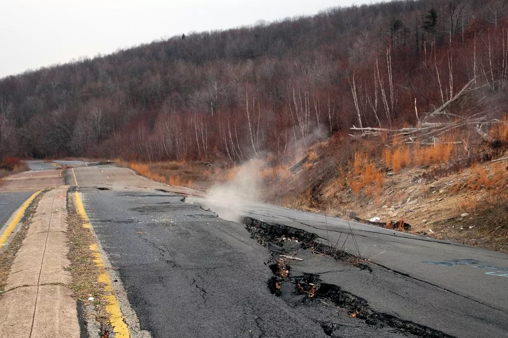 А обстановка ухудшалась с каждым годом. Уголь добывать стало невозможно, шахты и карьеры остановились. Уже и жить в Сентрейлии становилось опасно. Небольшие трещины в земле, сквозь которые иногда выходил дым, стали превращаться в провалы и разломы. Затронули они и дороги, и домохозяйства. А когда во внезапно открывшийся пролом во дворе своего дома чуть не угодил 12-летний мальчик, жители забили тревогу.