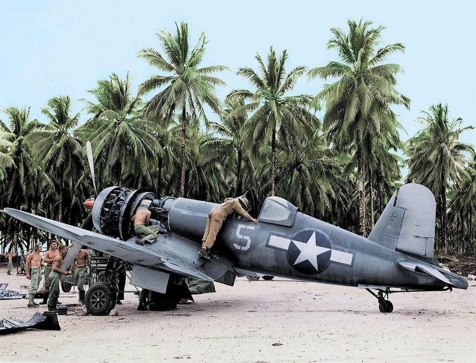 10 waysofhistory waysofhistory Путешествия Американский палубный истребитель 2 года назад Американский палубный истребитель-бомбардировщик F4U Corsair проходит техническое обслуживание на острове Ниссан, Папуа-Новая Гвинея, март 1944 год. Военная история Вторая мировая война Прошлое Война Военная техника Истребитель США Япония Тихий океан 1944 Ещё 0
