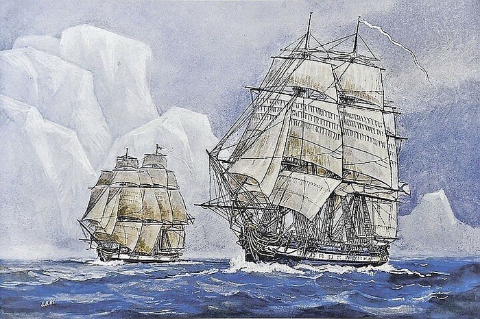 Легендарные шлюпы «Восток» Фаддея Беллинсгаузена и «Мирный» Михаила Лазарева.