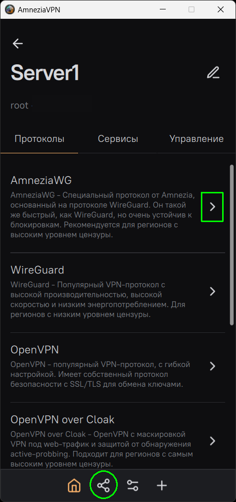 Для установки протокола AmneziaWG надо воспользоваться приложением Amnezia. Что это за приложение, как его установить и пользоваться, читайте в сообщении "Быстро и просто ставим VPN на ваш сервер".