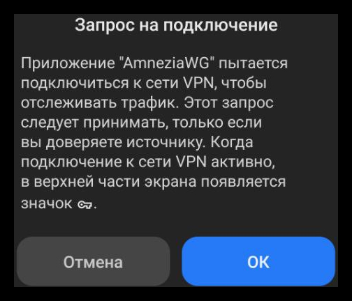 Переводите ползунок вправо, вас телефон спросит разрешения подключить этот VPN. Вот так это выглядит на Андроиде: