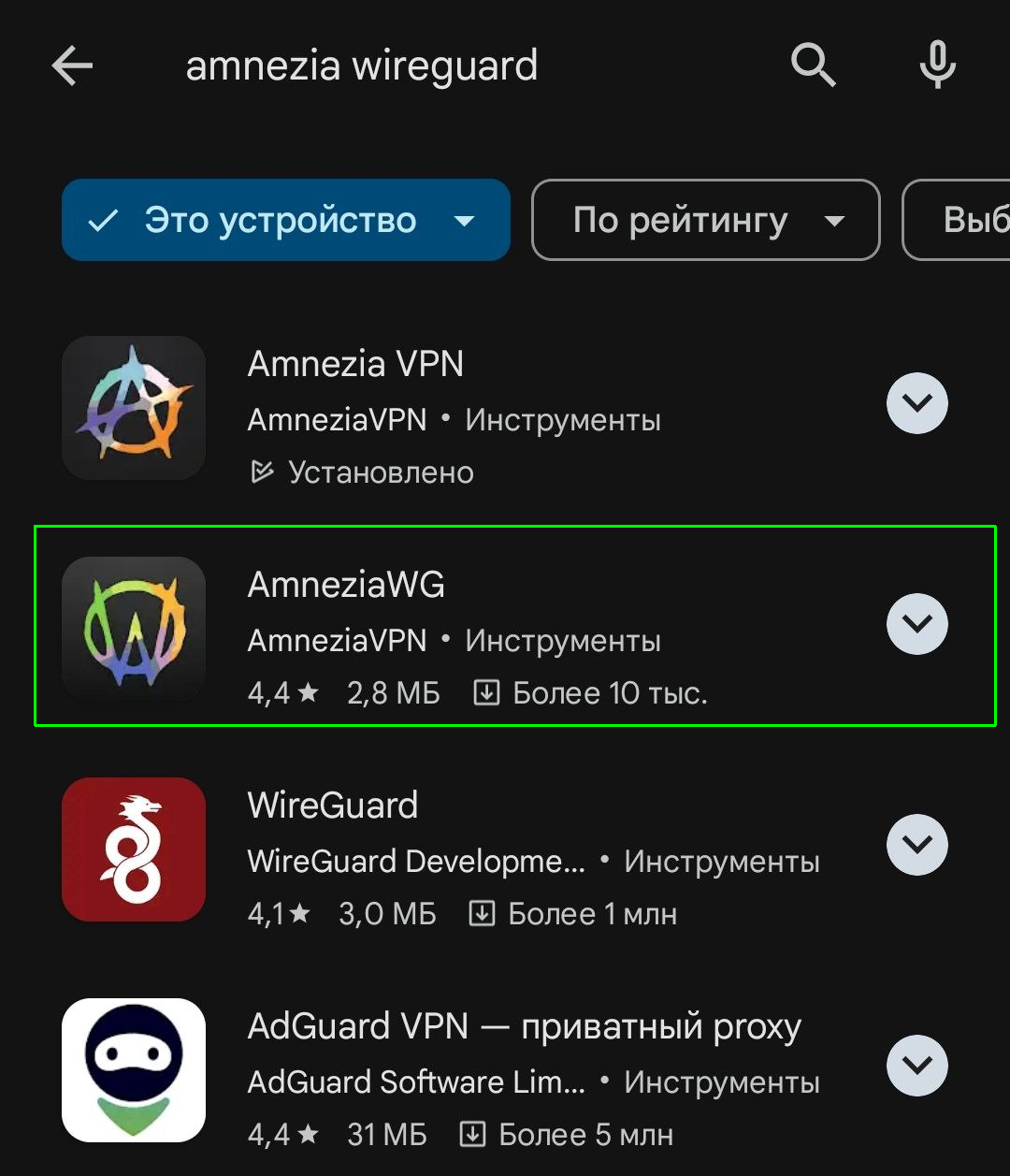 Искать надо по запросу "Amnezia Wireguard". Для самых ленивых, готовые ссылки не приложение (ссылки могут не работать с российских IP-адресов!):