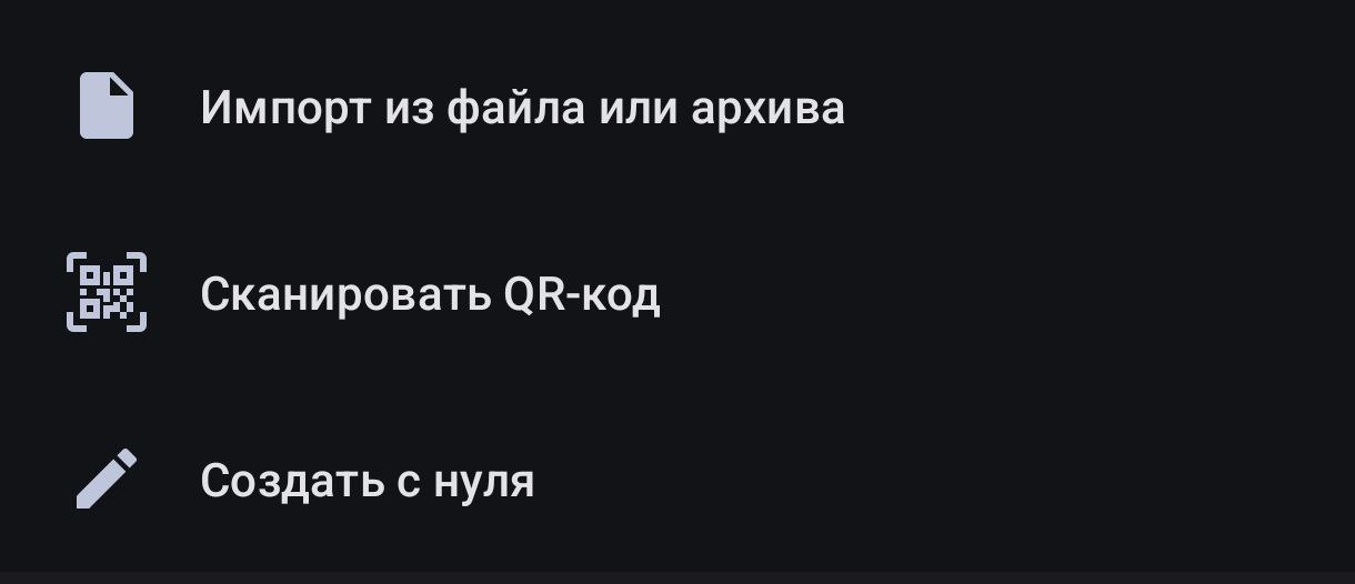 Если выберите опцию "Импорт из файла или из архива", то надо будет сохранённый куда-то файл конфигурации подсунуть приложению: