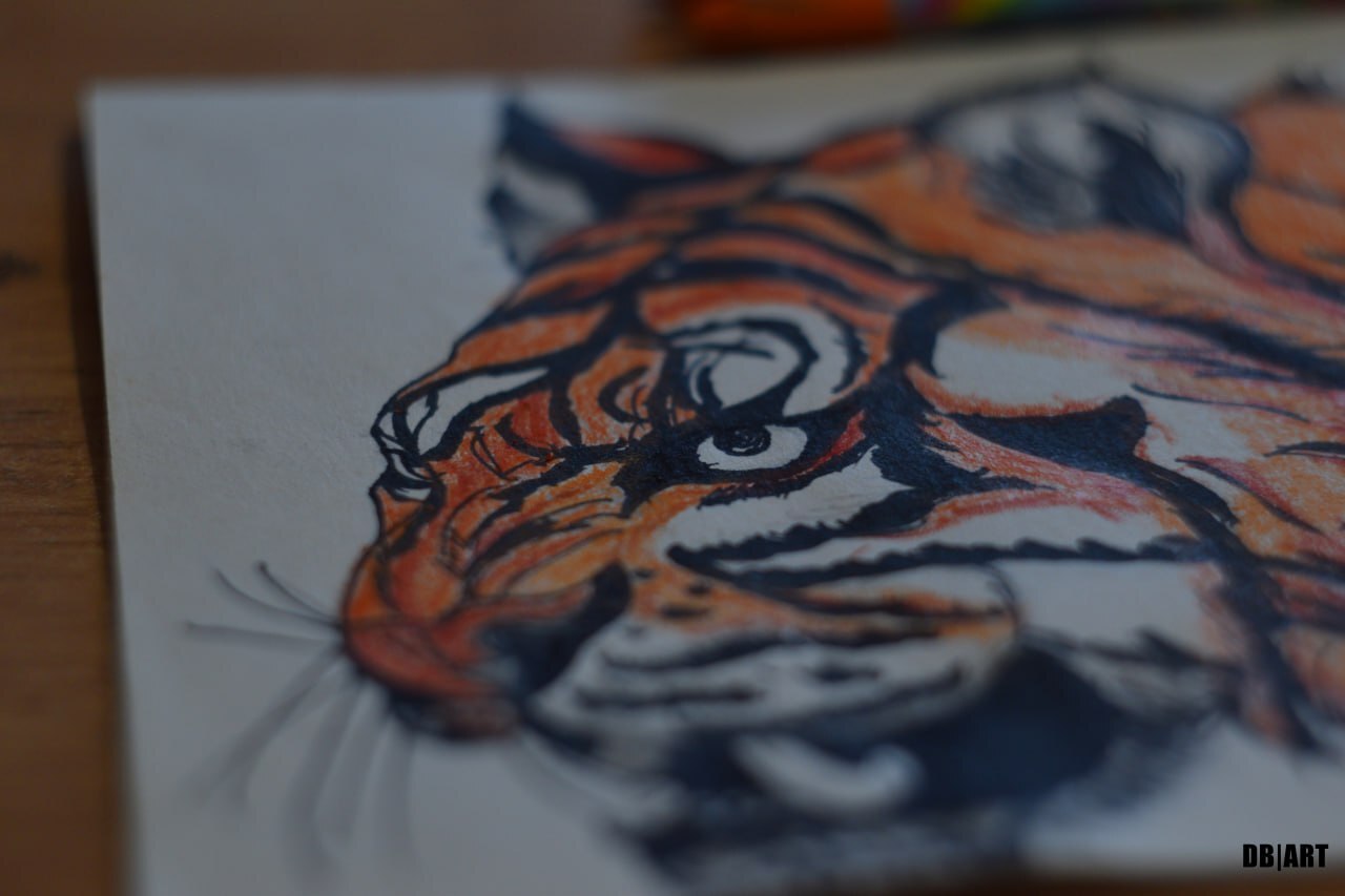 Решила порисовать на бумаге и дело дошло до покраса. В этом мне помогли мои восковые карандаши, которые уже лежат на полке дома с класса так восьмого. А мне уже не 14 лет, а 22. Но карандаши остались живее всех живых и тигр превратился в цветного красавца.