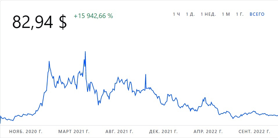 В первой половине 2021 года на графике можно заметить серьезные скачки цены. Это связано с тем, что в начале года был расцвет DeFi и весь сервис для пользователей, предложенный платформой AAVE, был очень востребован.