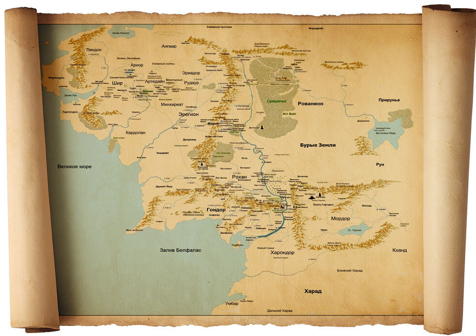 Кстати, интересно, что по задумке Толкина, через тысячелетия Средиземье ждало несколько трансформации, в результате которого оно превратилось бы в наш собственный мир. И в этом мире земли Южного Харада станут континентом Африка — так что все сходится :)