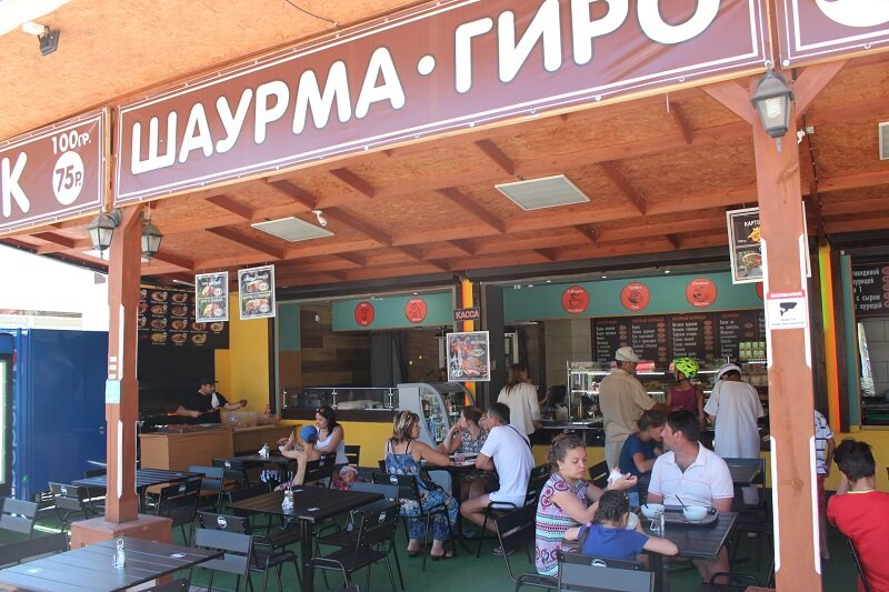 Справа — палатка с надписью «ШАУРМА 24».