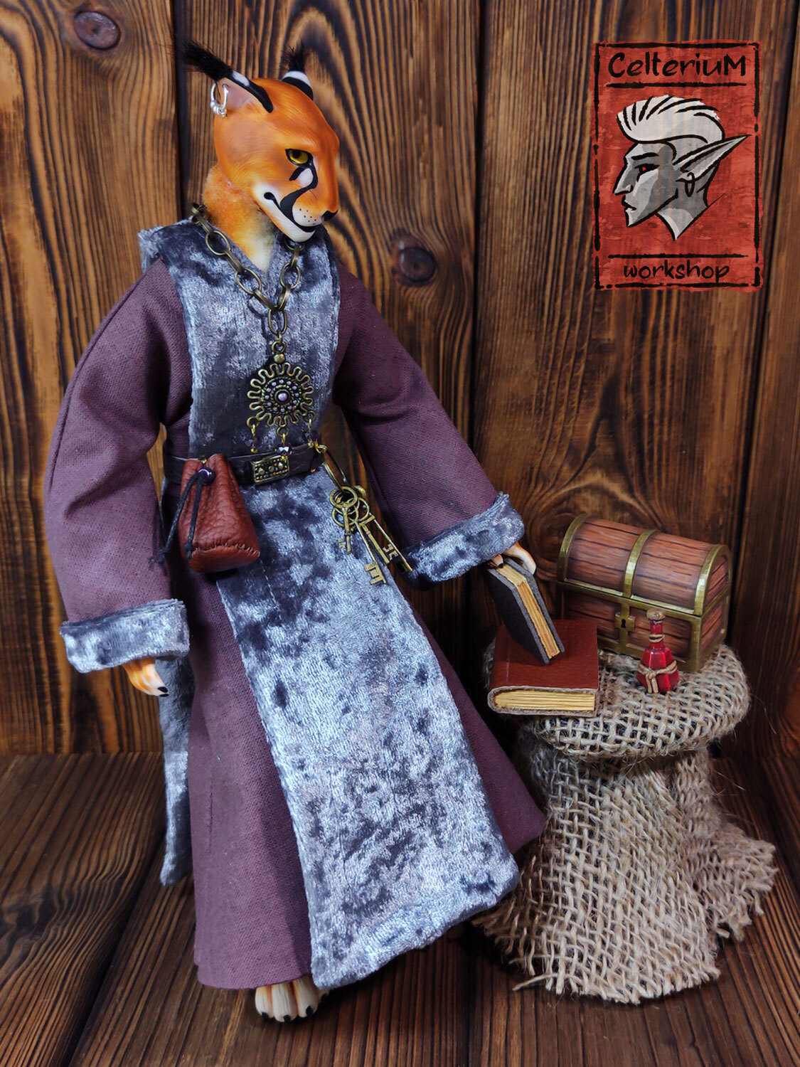 Эта каркасная игрушка делалась на заказ и уже радует своего Нереварина, пересчитывая вырученные за краденое дрейки и складывая контрабандную скуму в свой сундучок. Анасси вышла ростом с классическую барби - около 29см, полностью подвижна и чертовски харизматична :)