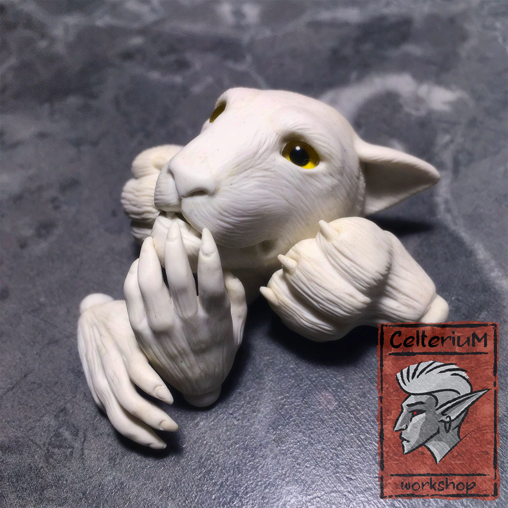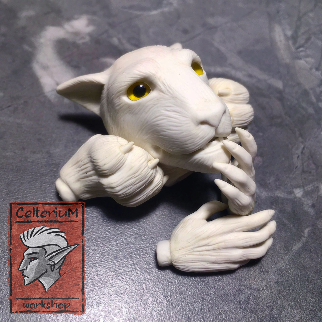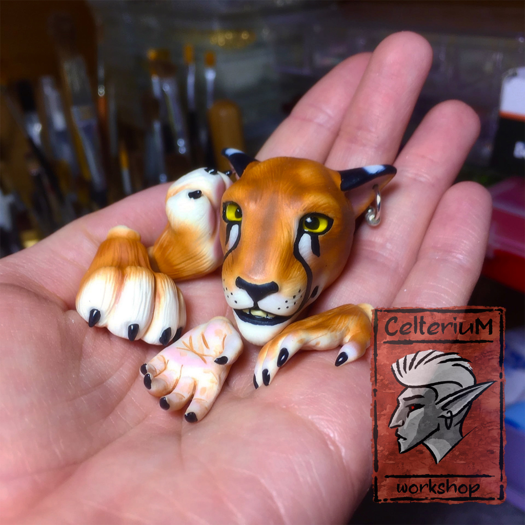 Голова, кисти рук и стопы были слеплены из полименой глины. Глазки тоже делались и расписывались с нуля, из акриловой смолы.