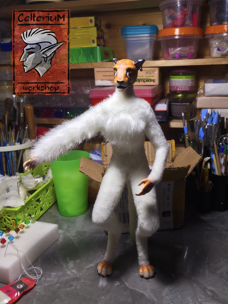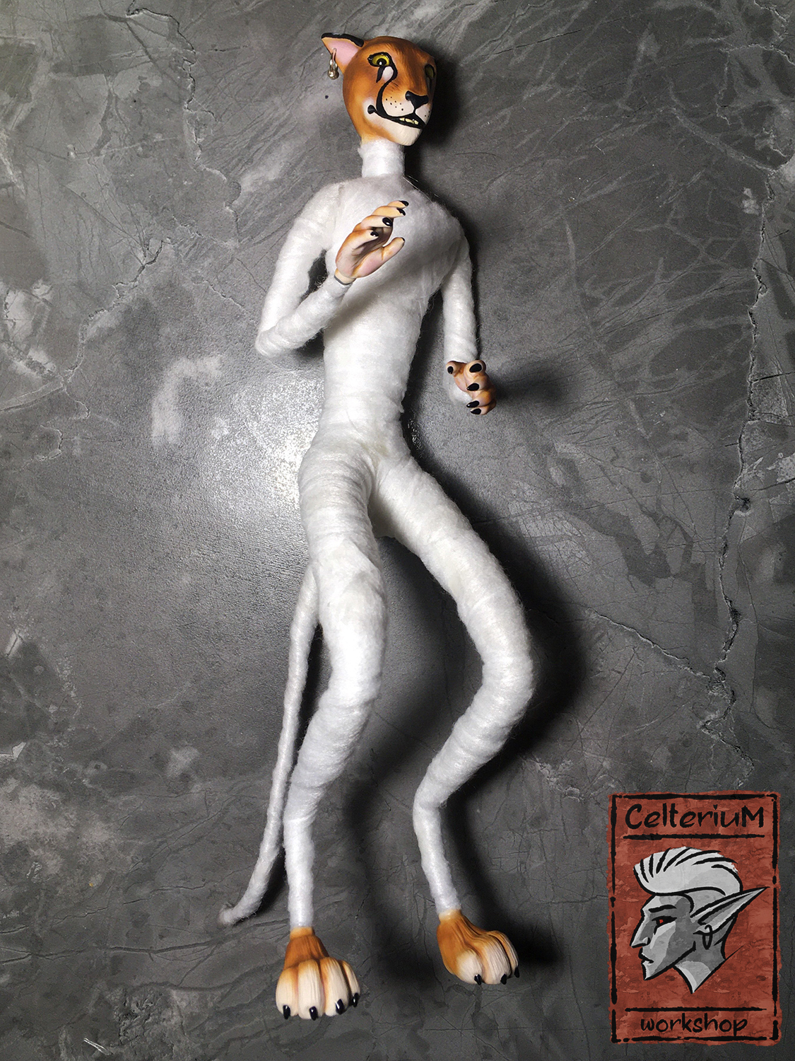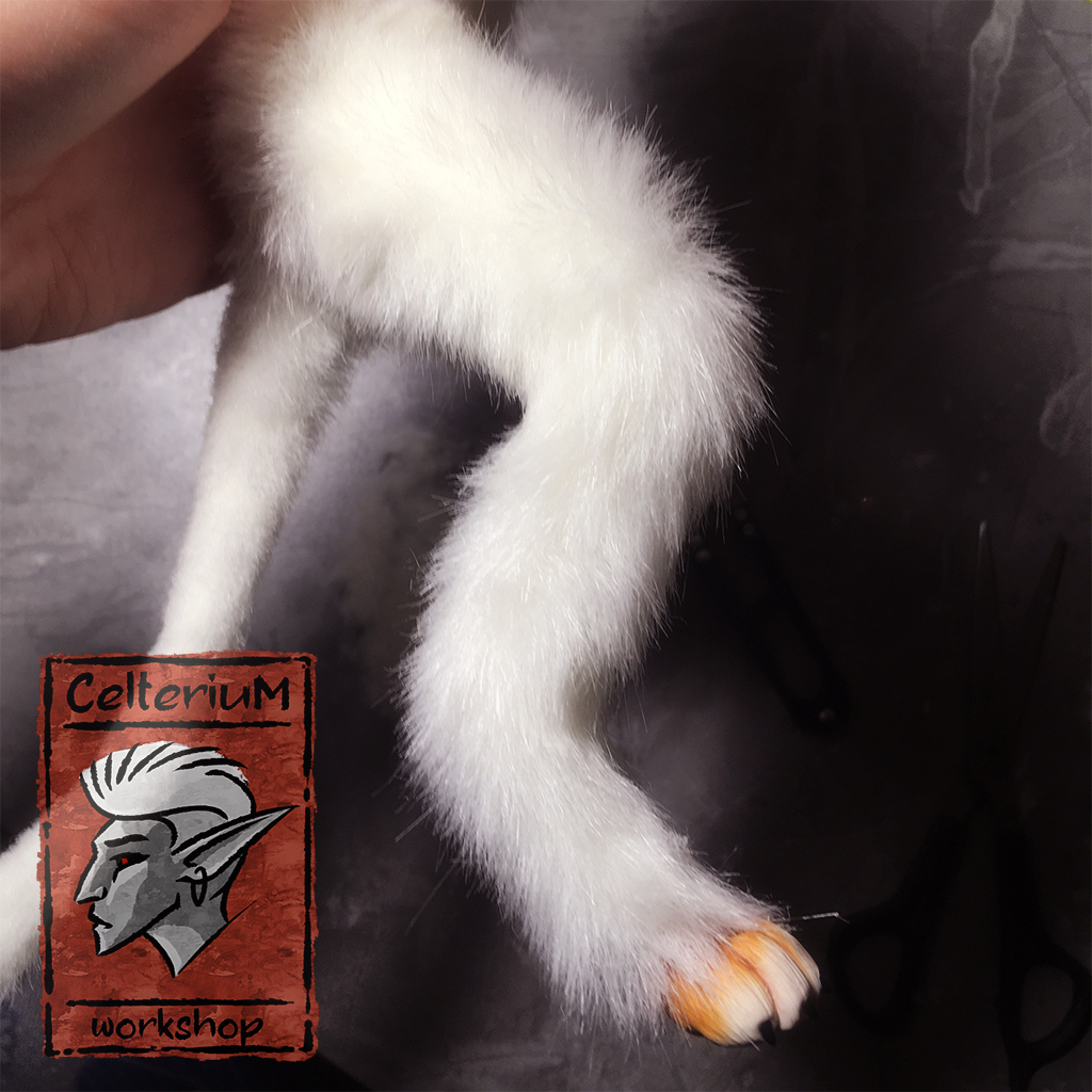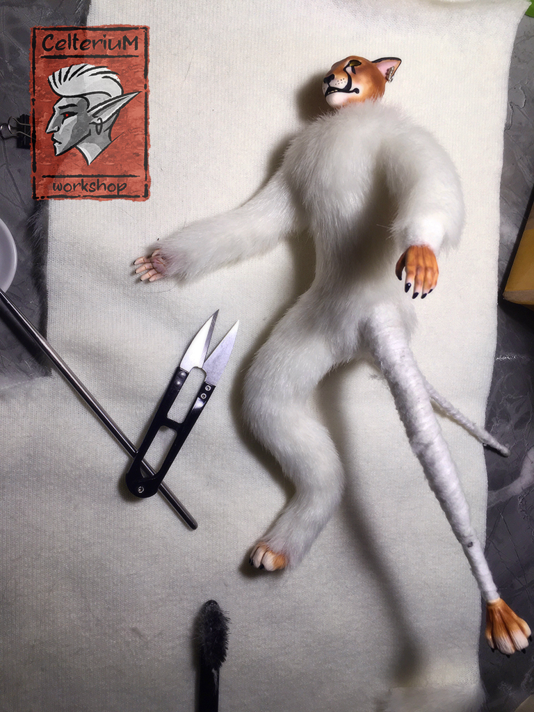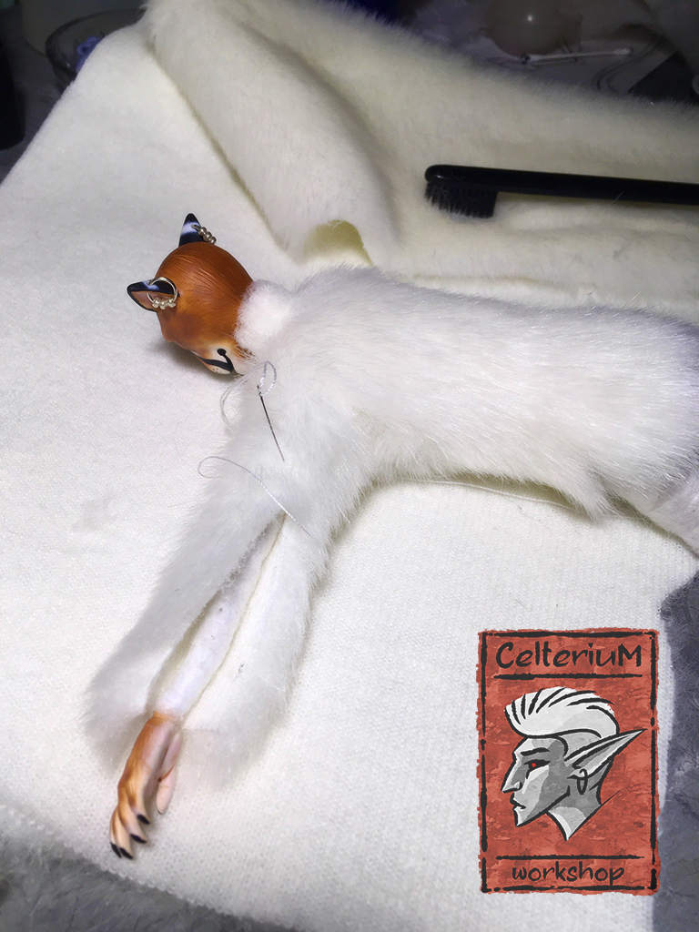 С обшивкой мехом я провозилась очень долго. Мех, кстати, оказался чудесный, густой, с подшерстком, реально как настоящий (да и стоил наравне с ним...). Приятно работать с качественным материалом. Каджитка резко набрала в объеме и стала похожа на снежного скайримского тролля xD