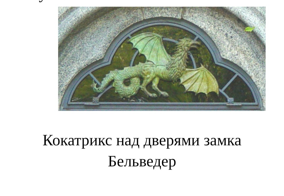 Чуть менее знаменитым, чем василиск, но чуть более известным (спасибо игре, хотя я узнала о нем далеко не из нее) является кокатрикс. Кокатрикс или кокатрис в целом не сильно отличается от каноничного геральдического Васьки — помесь птицы и змеи с чертами, присущими драконам. Однако крылья чаще изображают именно драконьими, да и тело почти лишено перьев, за исключением гривы на шее или вдоль хребта, а туловище и ноги больше похожи на львиные или драконьи. Так же кокатрикс, как и его восточноевропейские родичи, может изрыгать пламя, да и в целом весьма крупный — если славянские цикавачи размером редко превышают курицу или кошку, то кокатрикс часто сопоставим с человеком. Впрочем, как и прочие фольклорные драконообразные существа, кокатриксы и василиски растут всю жизнь или пока есть еда (как и почти все нормальные рептилии).