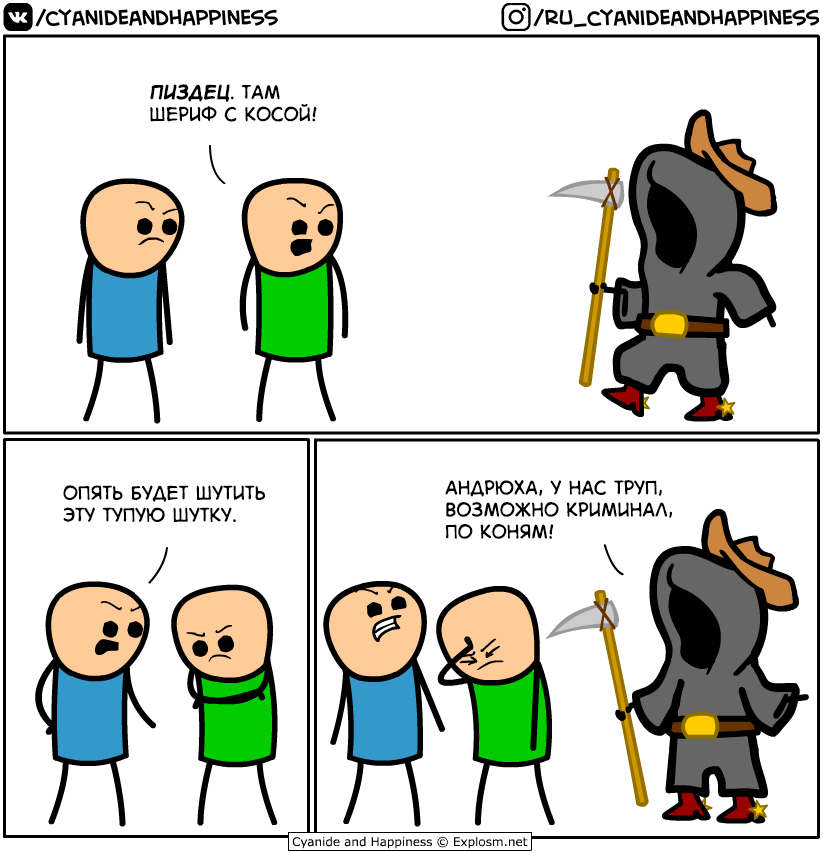 12 Pcheloff 5 лет назад Андрюха у нас труп (или Искусство АДАПТАЦИИ!) Комиксы Cyanide and Happiness Перевод Юмор Ещё 0