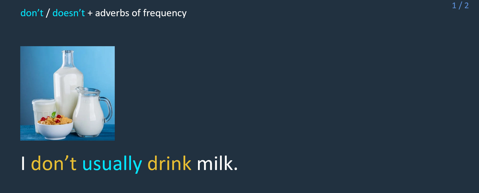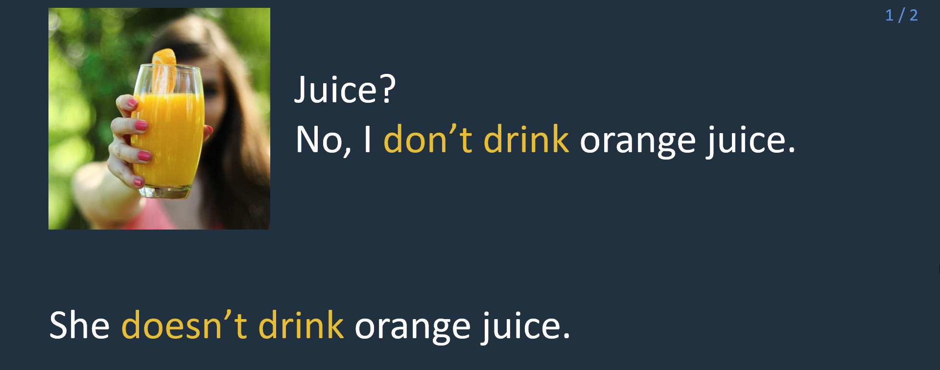 We _____ (not understand) Chinese. // We don’t understand (not understand) Chinese.