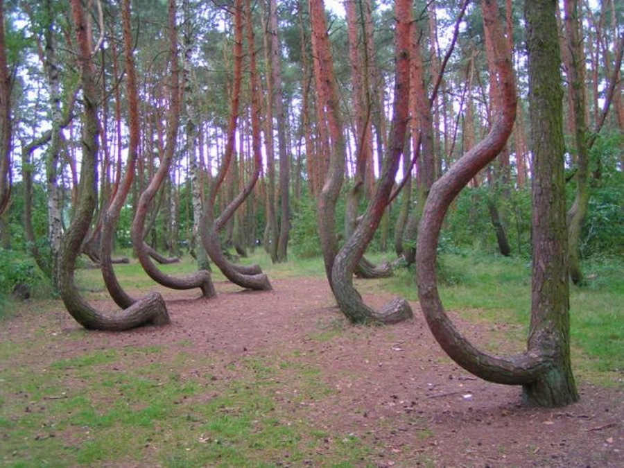 Стволы всех сосен изогнуты самым непостижимым образом: они изгибаются волнами, завиваются в спирали, образуют круги, как будто на самом деле участвуют в мистическом танце.