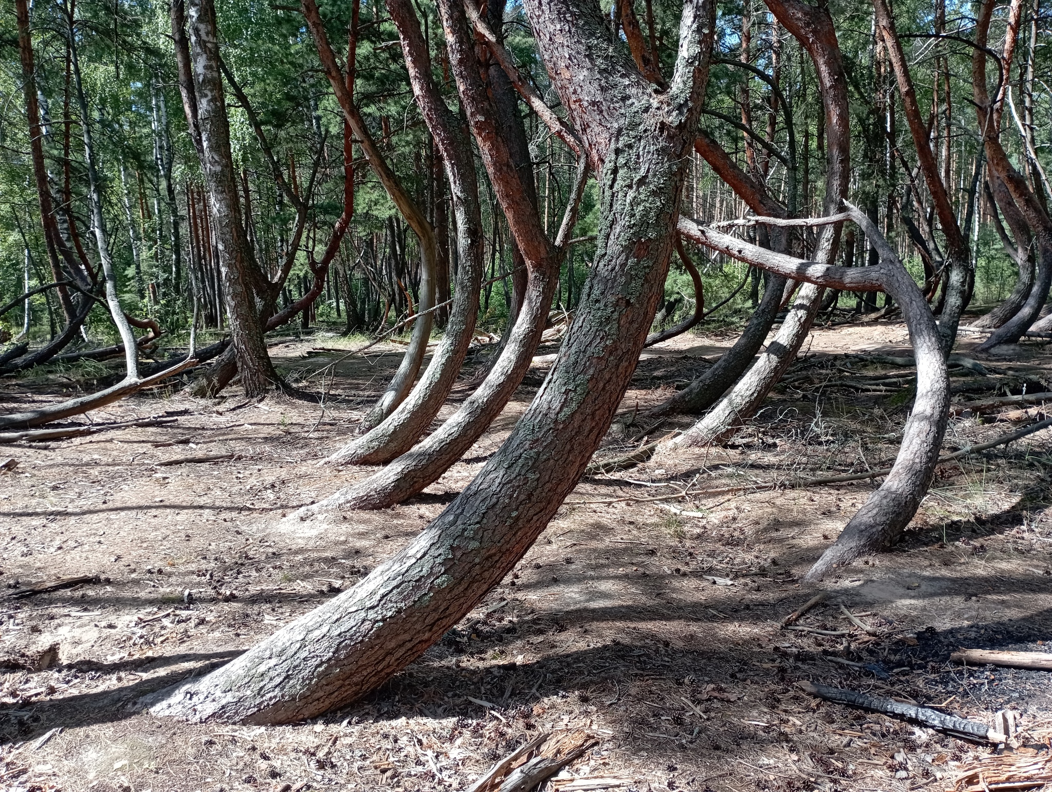 4) Танцующий лес под Рязанью. Много версий есть, почему деревья бубликами закручены…Местные рассказывают про смерч в 60-х годах, кто-то говорит о пришельцах. Любители потолковать про энергетику говорят о разломах…короче, место крайне любопытное.