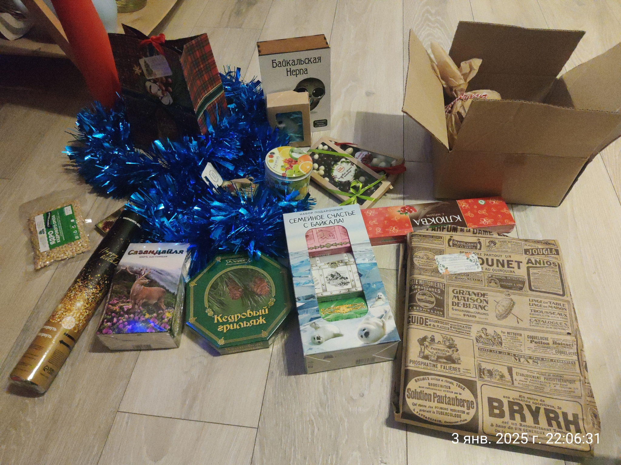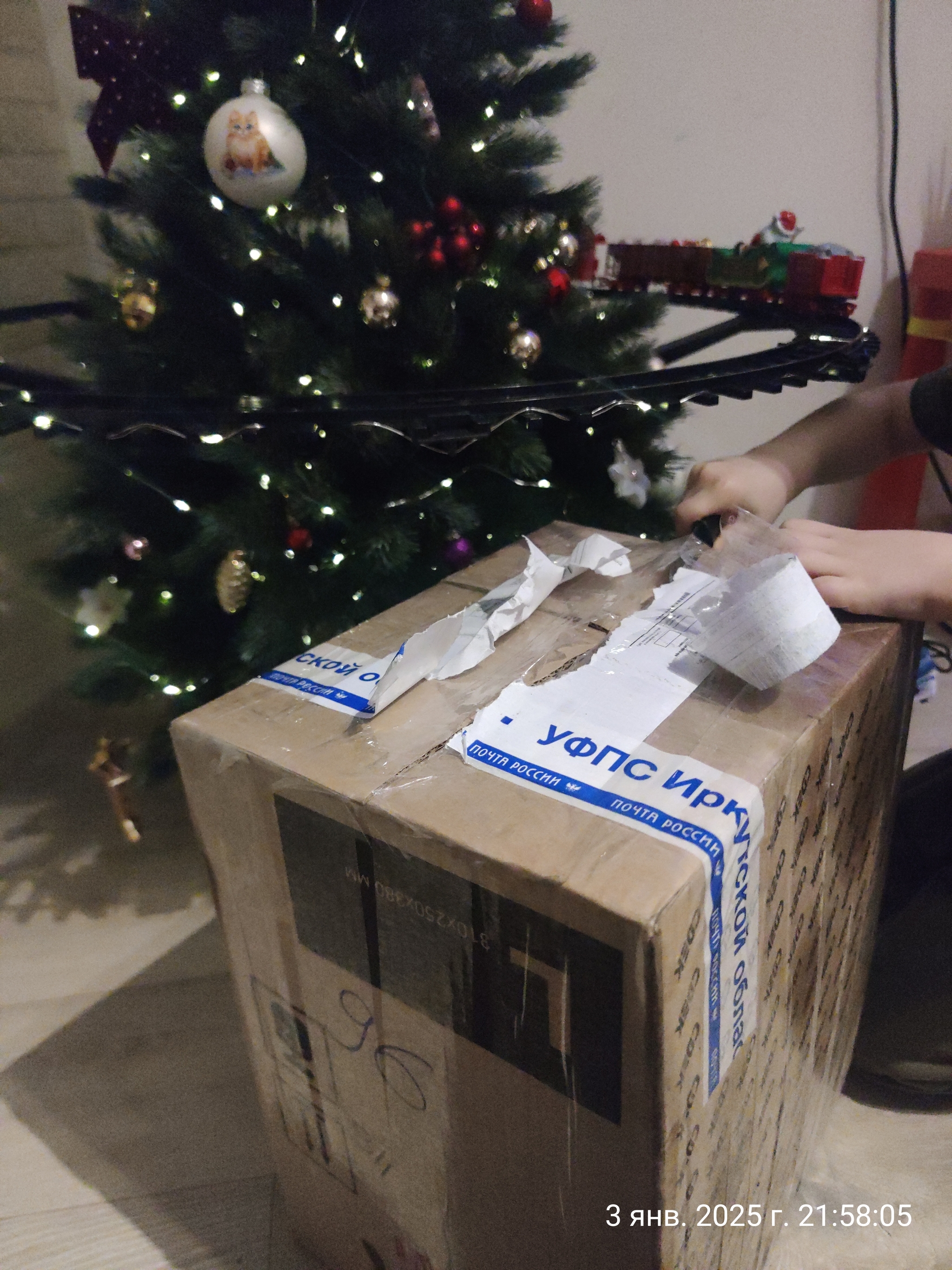 Здравствуйте, вчера пришло оповещение от почты России о том, что подарочек от такой далёкой Снегурочки из Ангарска уже готово к получению в Санкт-Петербурге. Сегодня побежал вечером на почту и всё получил. Как вы можете понять,я был отстранён от распаковки