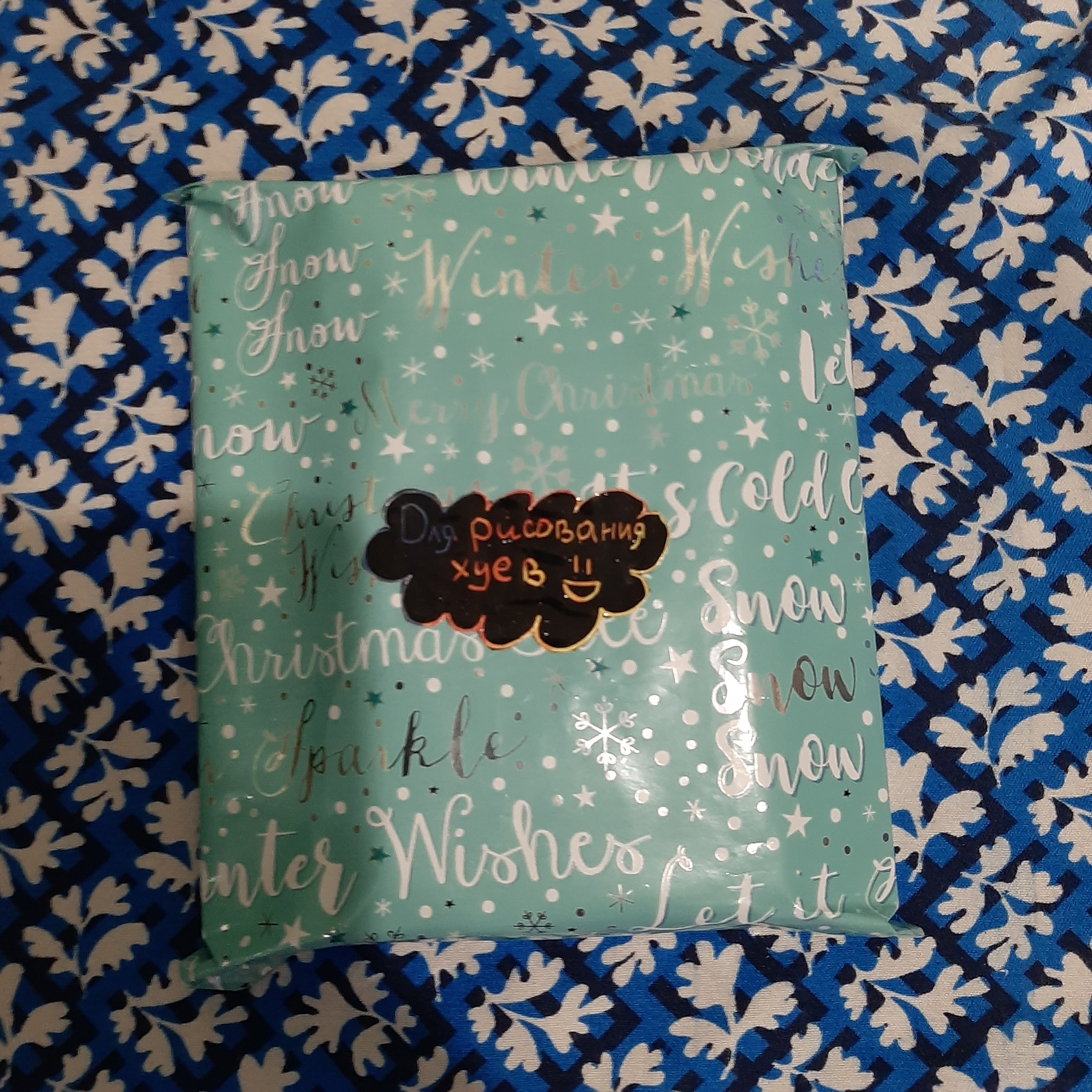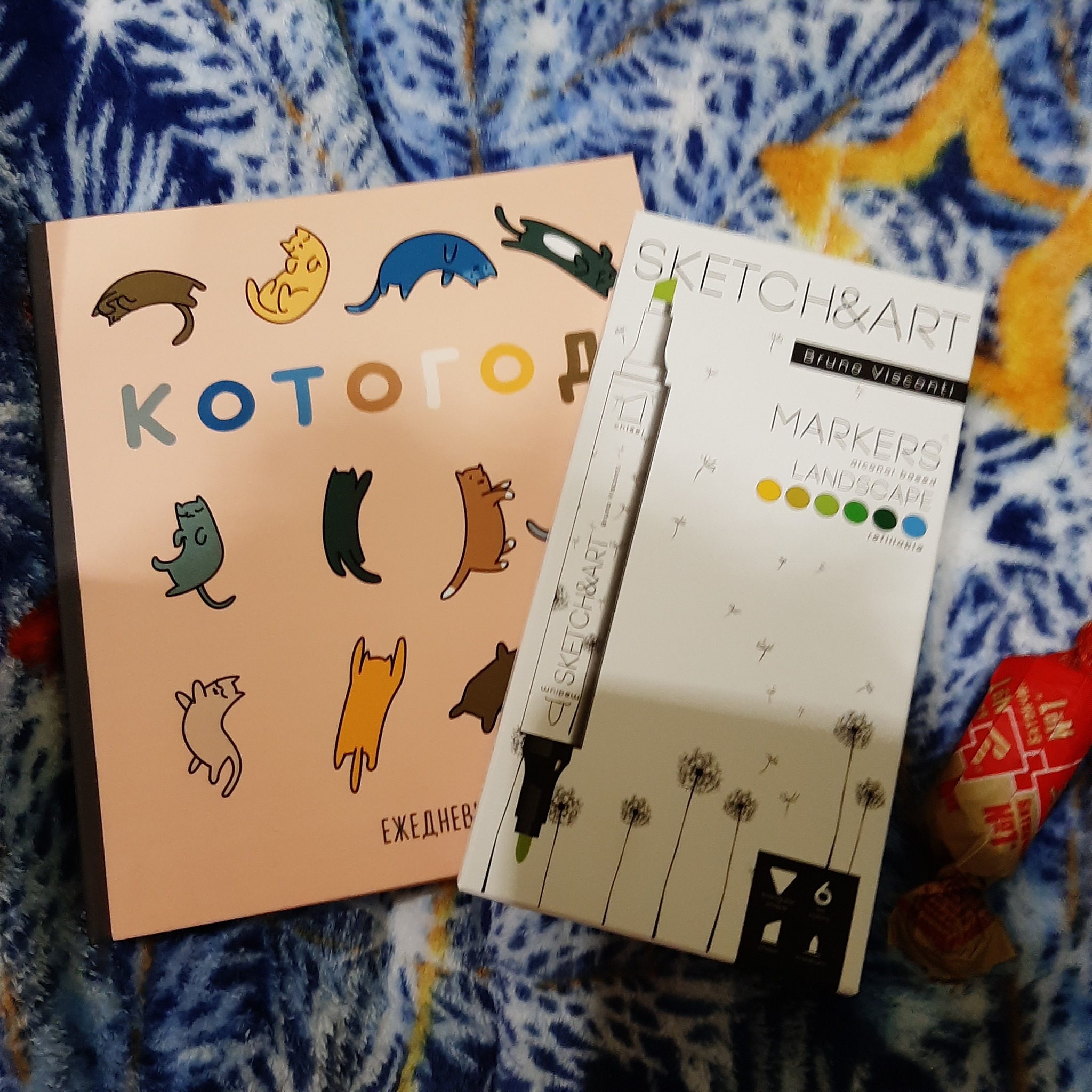 Дальше внимание деда привлёк такой пакетик. Внутри был замечательный скетчбук с маркерами)