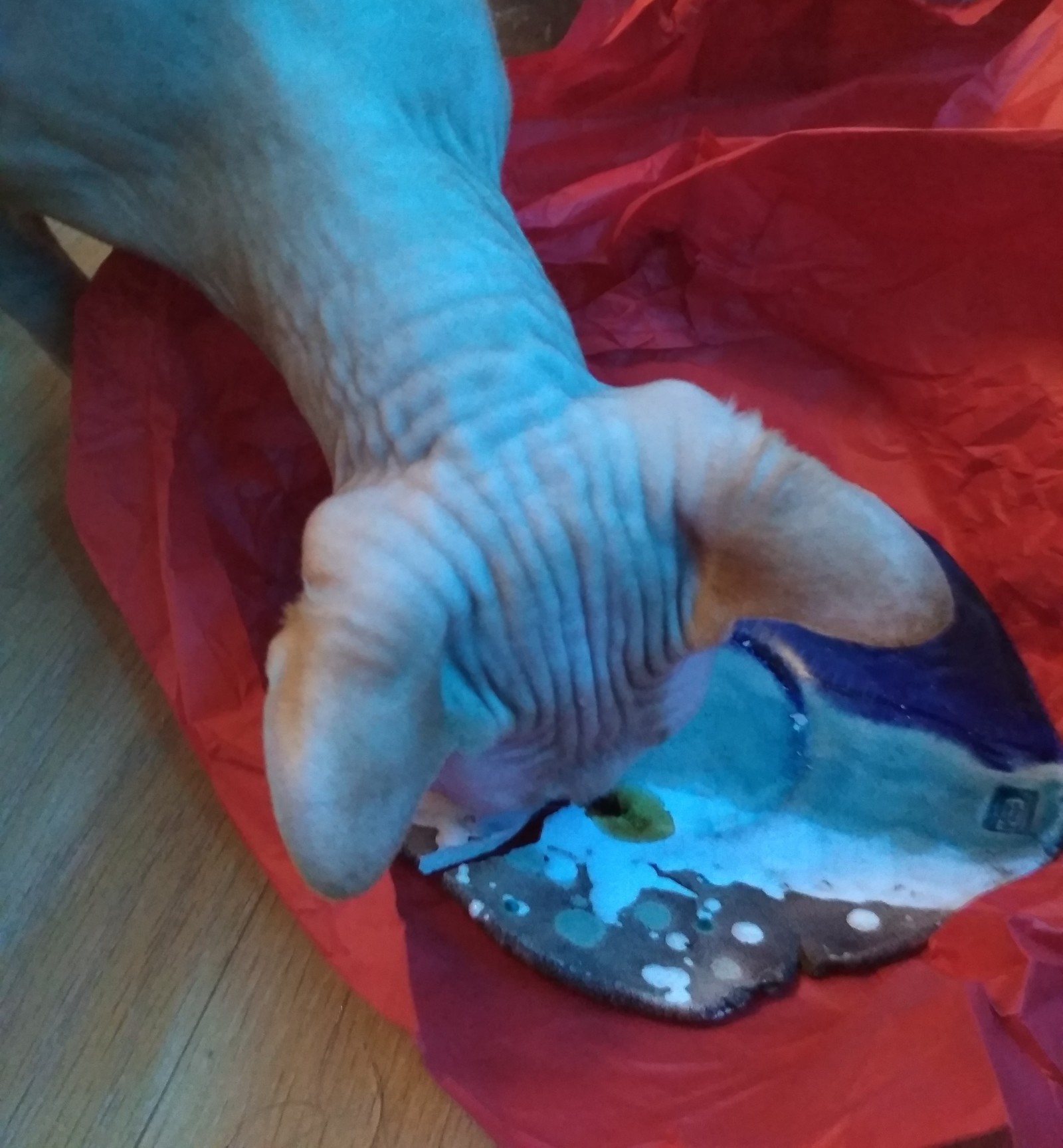 Аккуратно достаём нечто, обернутое в красную упаковочную бумагу...