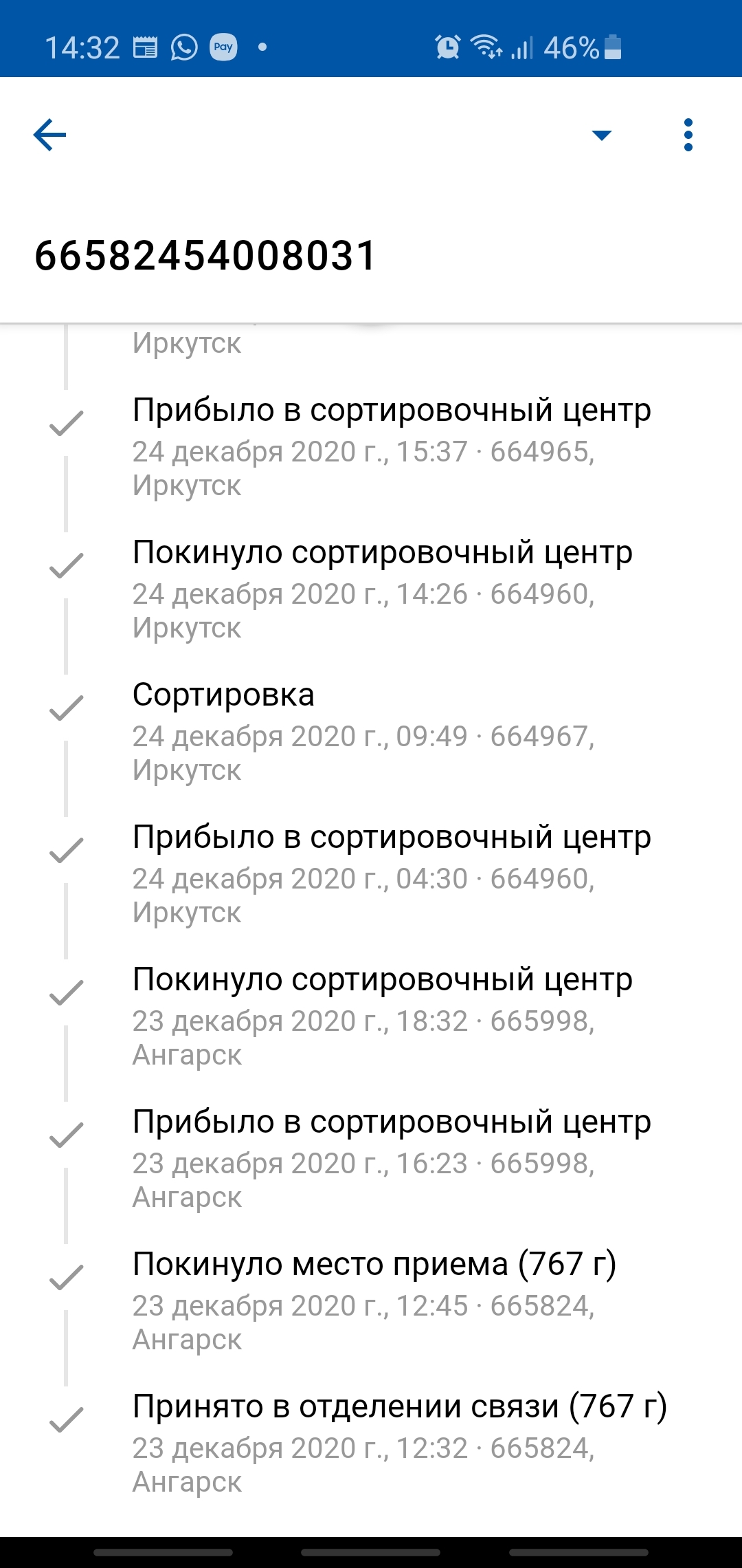 23 декабря мне прилетает трек номер с посылкой от анонимного Деда Мороза из Ангарска: