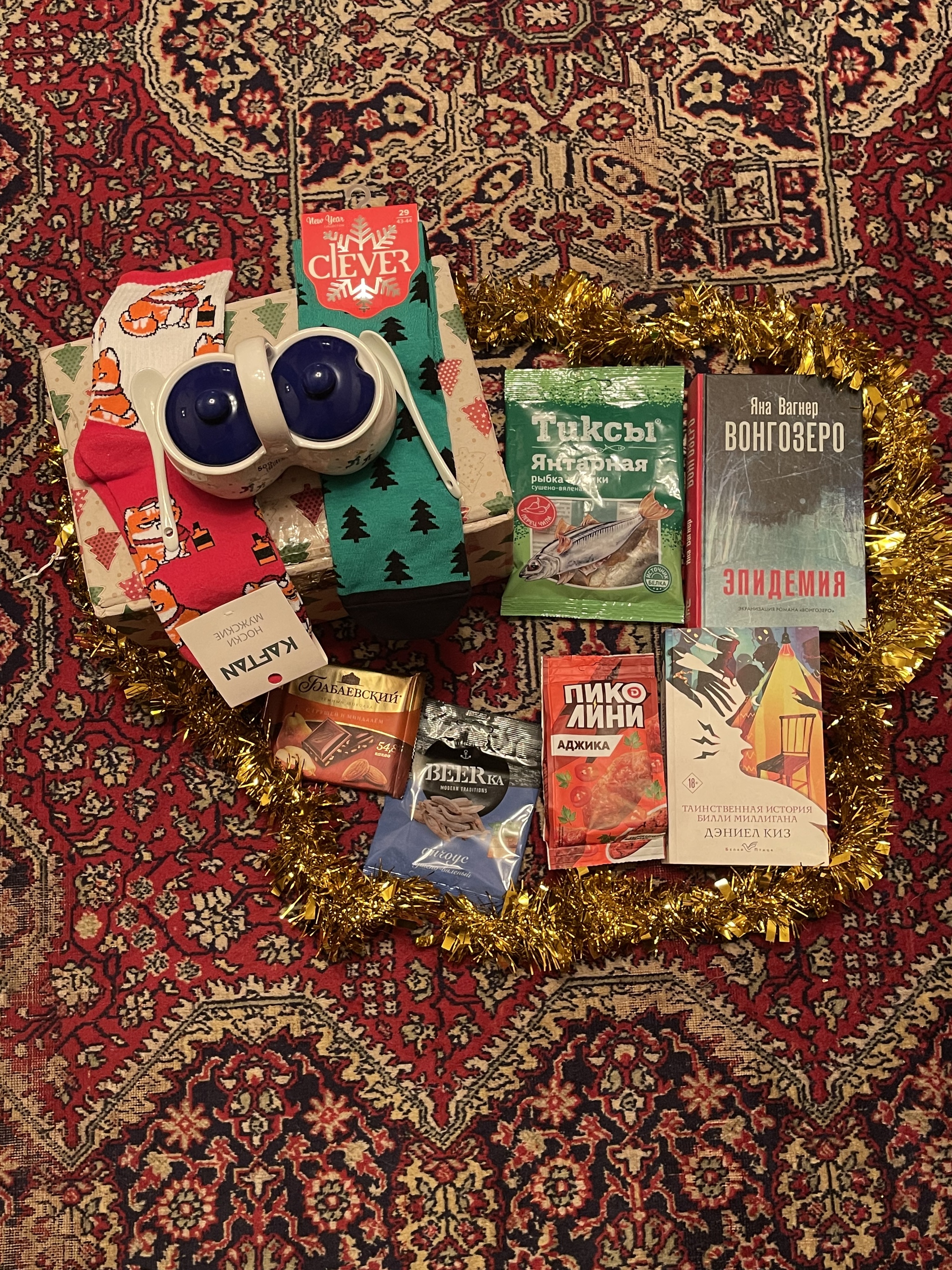 Хочу от всего сердца поблагодарить свою Снегурочку за чудесные подарки! Заказ собран от души: я очень рад тем подаркам, которые мне прислали, бабушка в восторге от кухонной утвари с уточками, которых она так любит, а колбаски - любимые колбаски моего брата. Носочки просто супер!