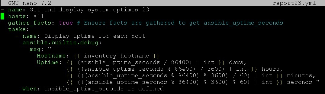1234- name: Display uptime in seconds