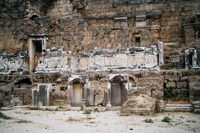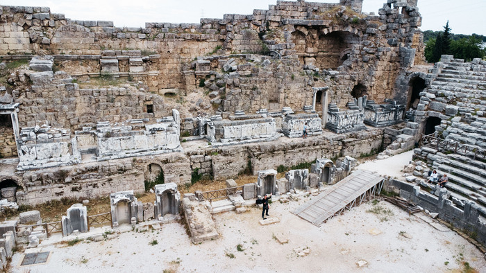 Расположена эта красота недалеко от Антальи, но на удивление туристы тут редкие гости. Так что можно практически в гордом одиночестве исследовать остатки римской цивилизации.