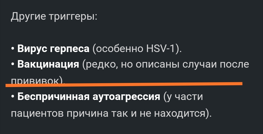 Беспричинная аутоагрессия (у части пациентов причина так и не находится).