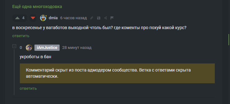 Отзывы на работу адмодеров, вопросы по функционалу сообществ и их возможностям, спорные случаи между пользователями и адмодерами, предложения по правилам для сообществ - всё это собираем здесь.