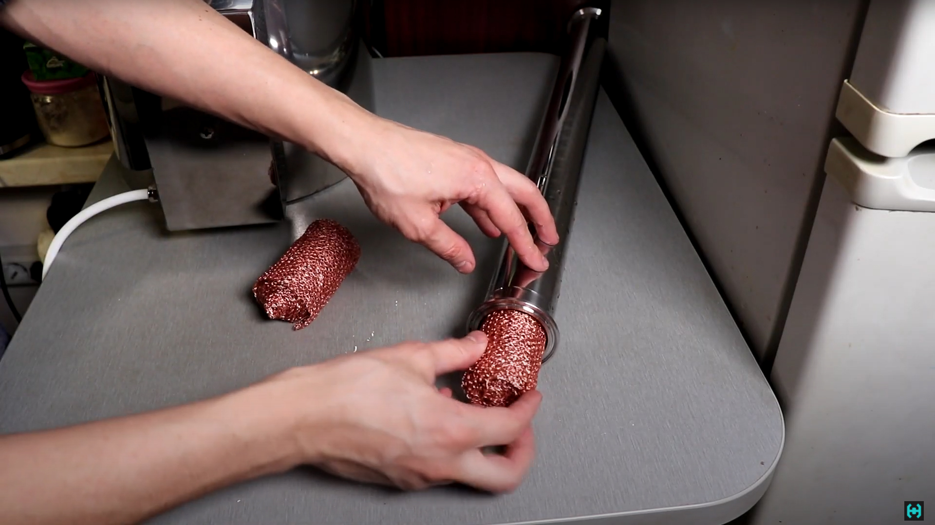 В зимнее время года доохладитель сразу покроется слоем инея. Видел, некоторые фанаты, при получении спирта-сырца из сахарной браги забивают царгу медными сетками Панченкова, уверяя что продукт на выходе становиться чище. Проверил. Особой разницы не заметил. Это не фруктовая брага, где набраживаются серные соединения от которых нужно избавляться. Сетка действительно потемнела. Лежа в коробке на открытом воздухе медь так же окисляется и темнеет. Потом ее нужно вываривать в лимонной кислоте, оберегать, любить и лелеять. Я слишком стар для всего этого дерьма...