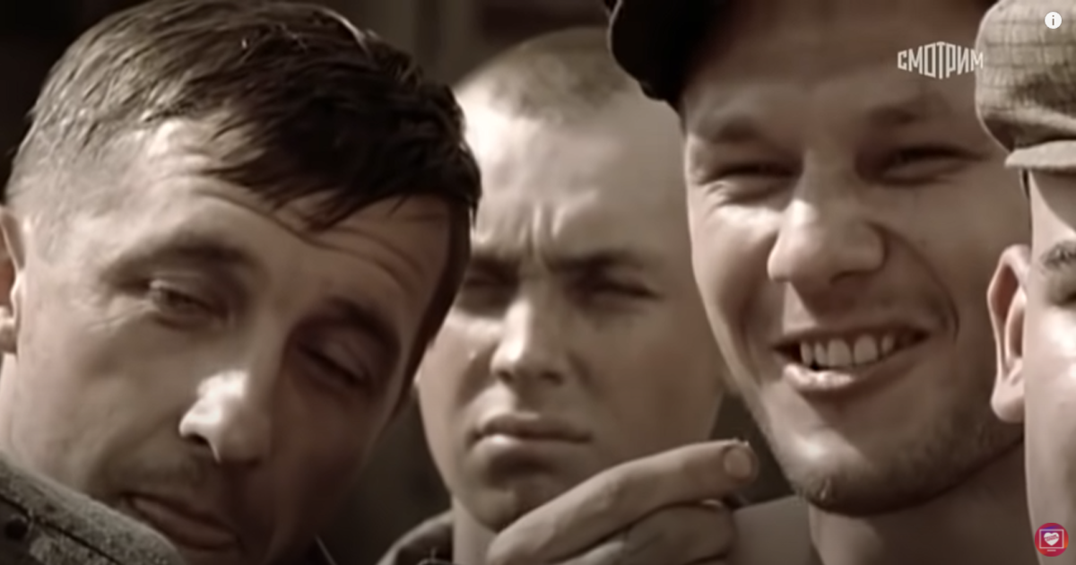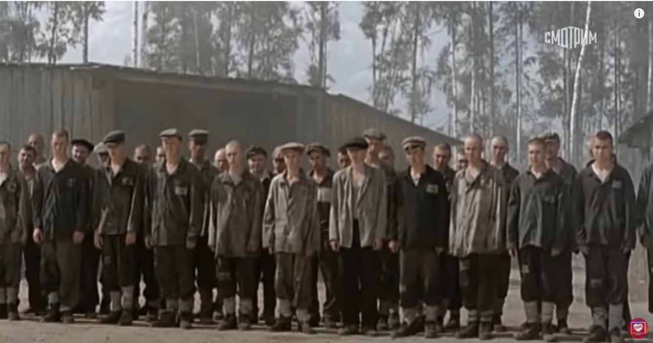 Возвращаемся так сказать к нашему "правдивому" и "самому достоверному" сериалу о войне. Из строя выходят несколько уголовников осужденных видать по 58 статье, нам номера статей не называют, за что конкретно осуждены не объясняют, так что приходится только гадать. Уголовники рецидивисты ржут как кони. Но тут несколько шагов вперед делает уголовный авторитет Глымов, забегая вперёд скажу, осужденный в том числе и за убийства, о чем нам впоследствии и расскажут, тоже желает записаться добровольцем. Начальник лагеря \тому удивляется: "Ты же в законе Глымов, не работал, а на фронт рвешься?