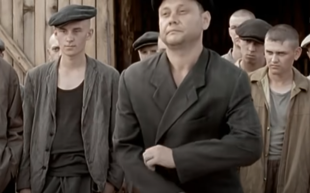 И вот уже лагерь НКВД, на плацу построились заключенные и майор перед ними толкает речь, призывает вступить в ряды Красной Армии. Урки ржут, гогочут, перекидываются издевательскими фразами.