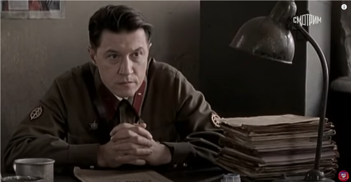 Тем временем злобный и коварный НКВД-шник допрашивает прочих солдат вышедших из окружения, по всячески их кошмаря и принуждая себя оговорить. Ну тут в кабинет следователя заходит человек званием постарше и начинает следователя распекать за то что всех он во врагов народа записывает, народа катастрофически не хватает, воевать кому то надо и пусть все искупят свою перед родиной кровью на передовой. Следователь соглашается, но явно не охотно, вот же упырь какой, всех под расстрел подвести хотел.