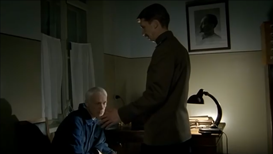 Ну а тут, нагло улыбаясь, майор протягивает заключенному, распечатанное письмо. Заключенный хочет уже идти, на что майор говорит, чтобы он читал письмо здесь, дескать что подумают другие заключённые о воле, после того как ознакомятся с содержанием этого письма.
