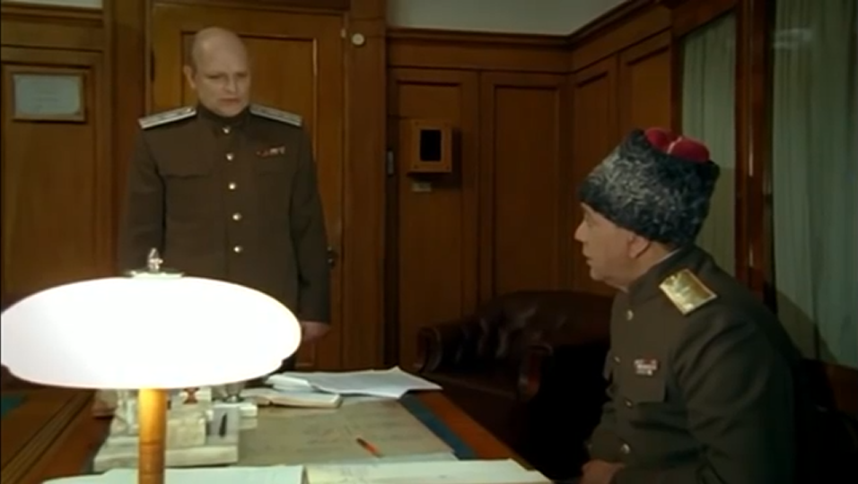 Генерал хочет видеть Герасимовича перед своими очами, так что он приказывает позвать телевизионного мастера в кабинет. Полковник передает просьбу генерала дежурному, тот говорит есть. По вызову генерала в кабинет заходит Игорь Скляр.