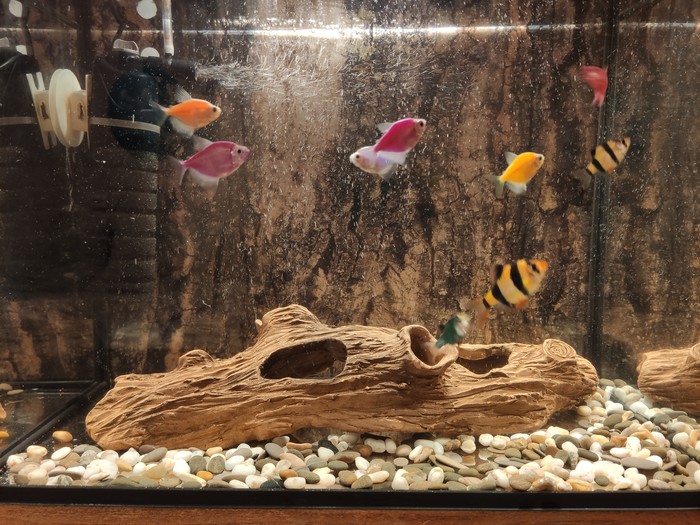 Докупил рыбок, сейчас 5 барбусов, и 5 тернеций. И 2 сома.