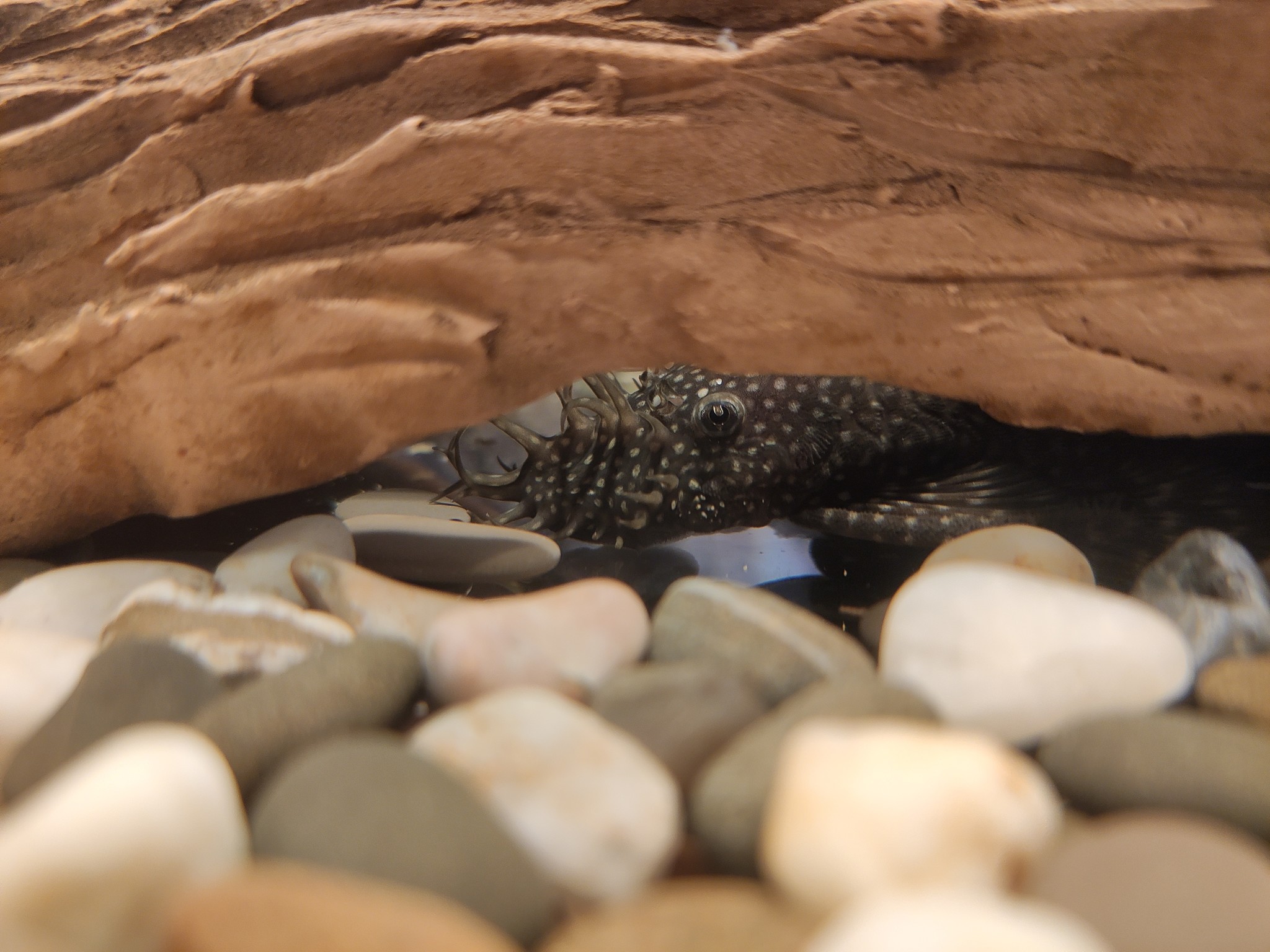 Даже поесть не даёт. Даю корм в разных местах. Большой сразу ест, и как увидит, что меньший спускается с фильтра, сразу за ним.