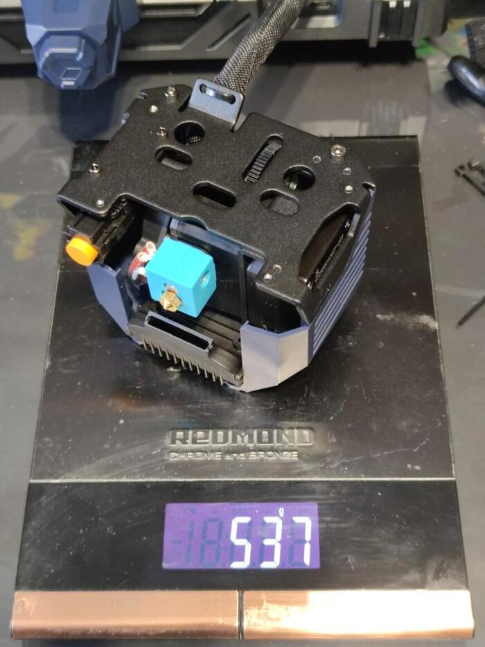 Вес чуть больше полу кг меня удивил конечно. Металическое основание, подозреваю, отдельно весит около 20% от общей массы. В общем такую голову особо быстро не погоняешь. Плюсы у данной головы тоже есть. Вентилятор охлаждения модели не совсем классический. Я так понял, что эти вентиляторы используются в охлаждении ноутбуков, а значит в теории должны быть достаточно мощными. Второй большой плюс, это очень короткий директ. Аналог Titan aero. Проверенный уже давно временем, рабочий, хороший вариант. НО. Anycubic на другое сови принтеры (такие как 1-я кобра, 4max и ещё какие то) ставит Dual Drive BMG экструдер. Так почему бы и сюда не поставить подобный механизм с двумя шестеренками подачи? непонятно...
