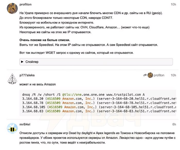 🟠Эти догадки подтвердились – часть подсетей Amazon попала под «теневой бан»: пинг есть, но скорость режется до нуля;